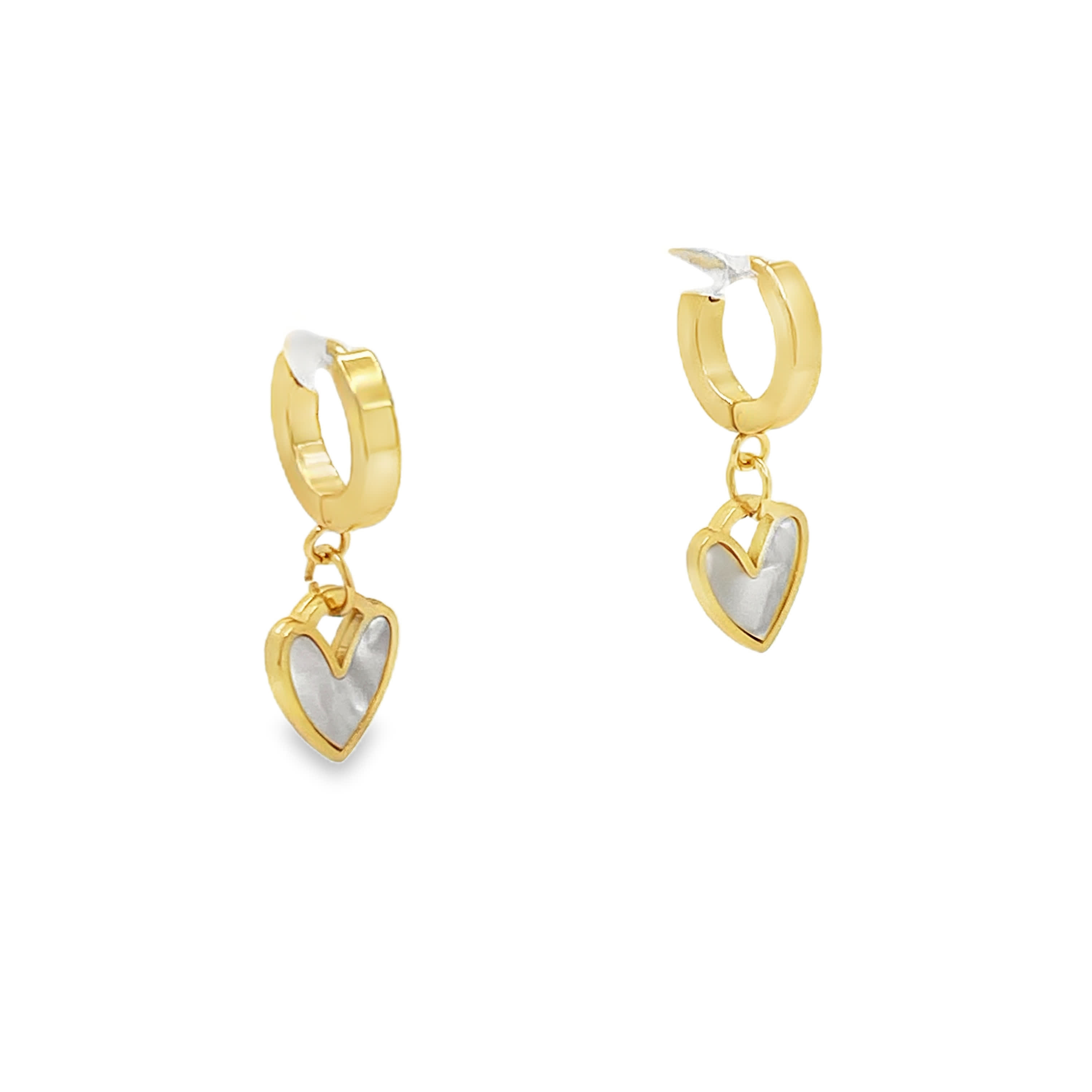 Kolczyki koła w kolorze żółtego złota z perłowymi kroplami w kształcie serca