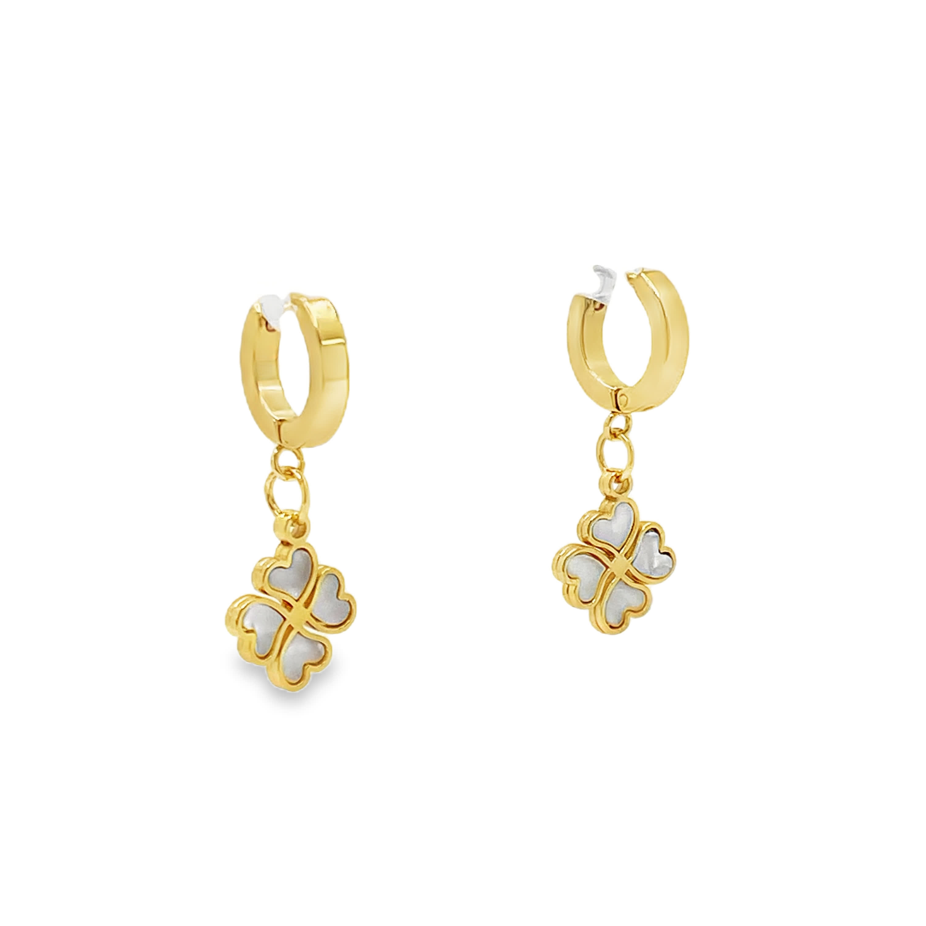 Kolczyki wiszące w kolorze żółtego złota z koniczyną