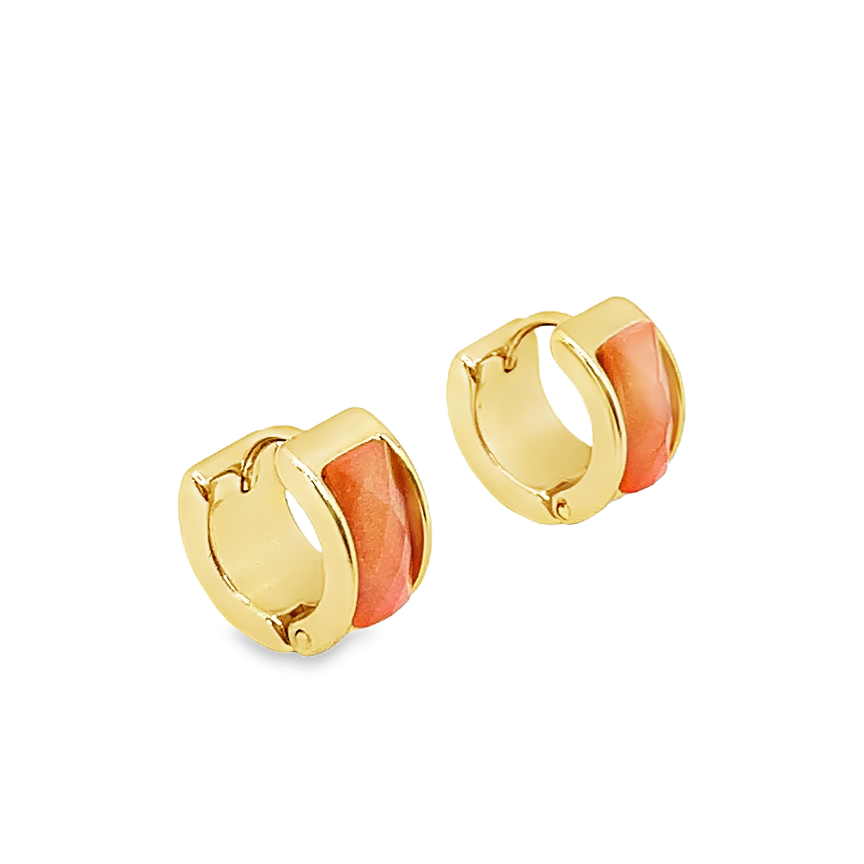 Kolczyki koła w kolorze żółtego złota z kaboszonami z czerwonopomarańczowego korala