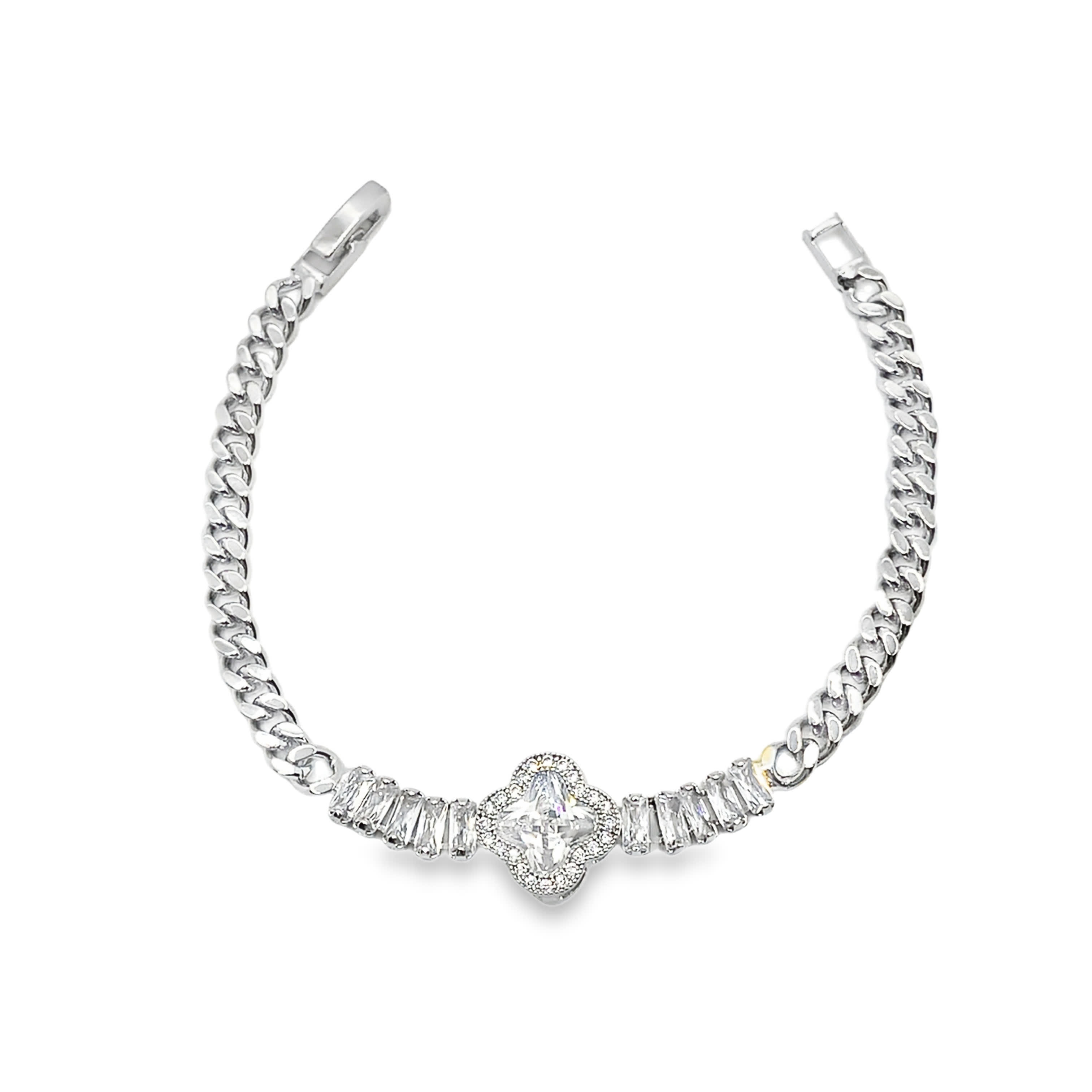 Bransoletka łańcuszkowa ze srebra próby 925 z diamentem o szlifie księżniczki