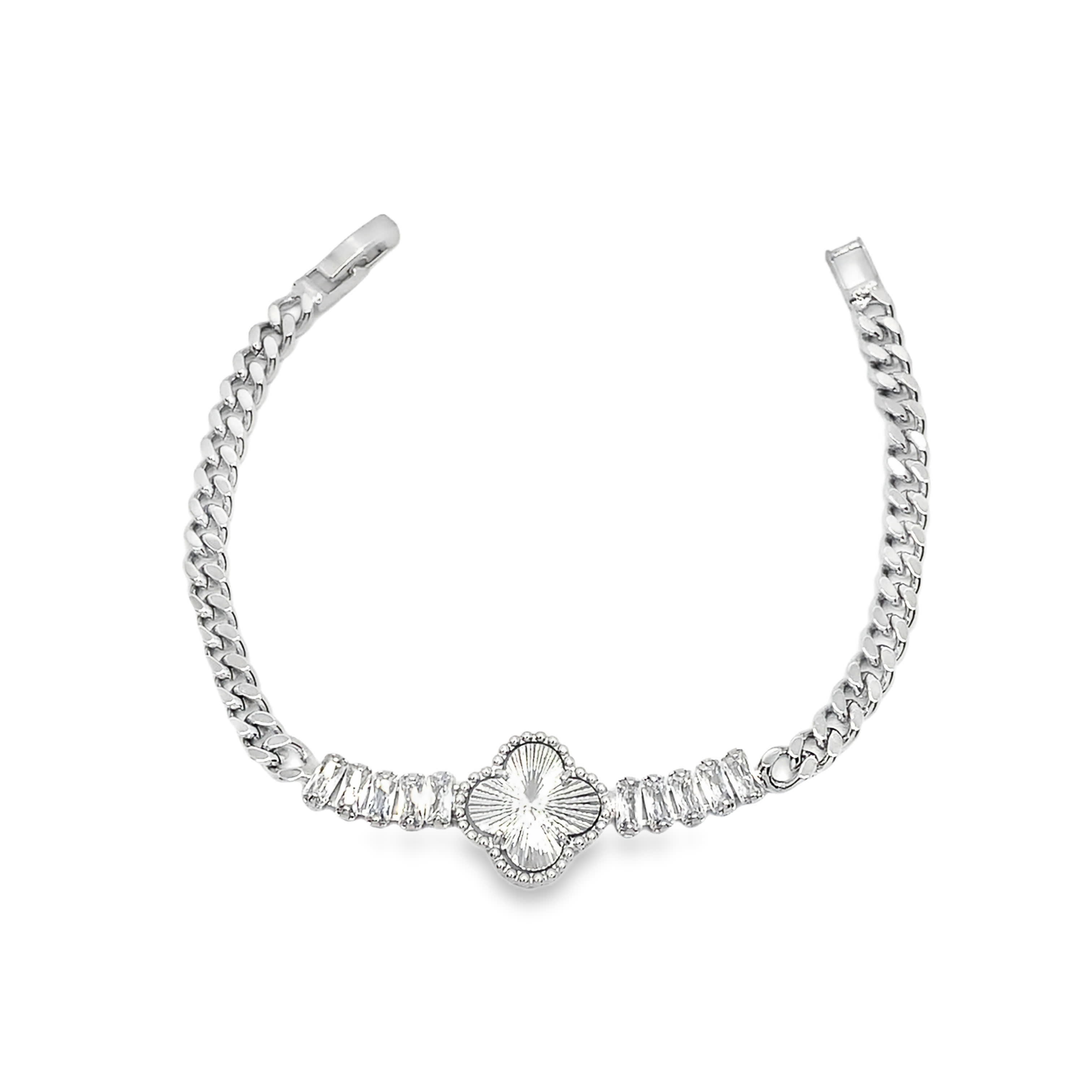 Bransoletka z białego złota z zawieszką w kształcie koniczyny kryształowej