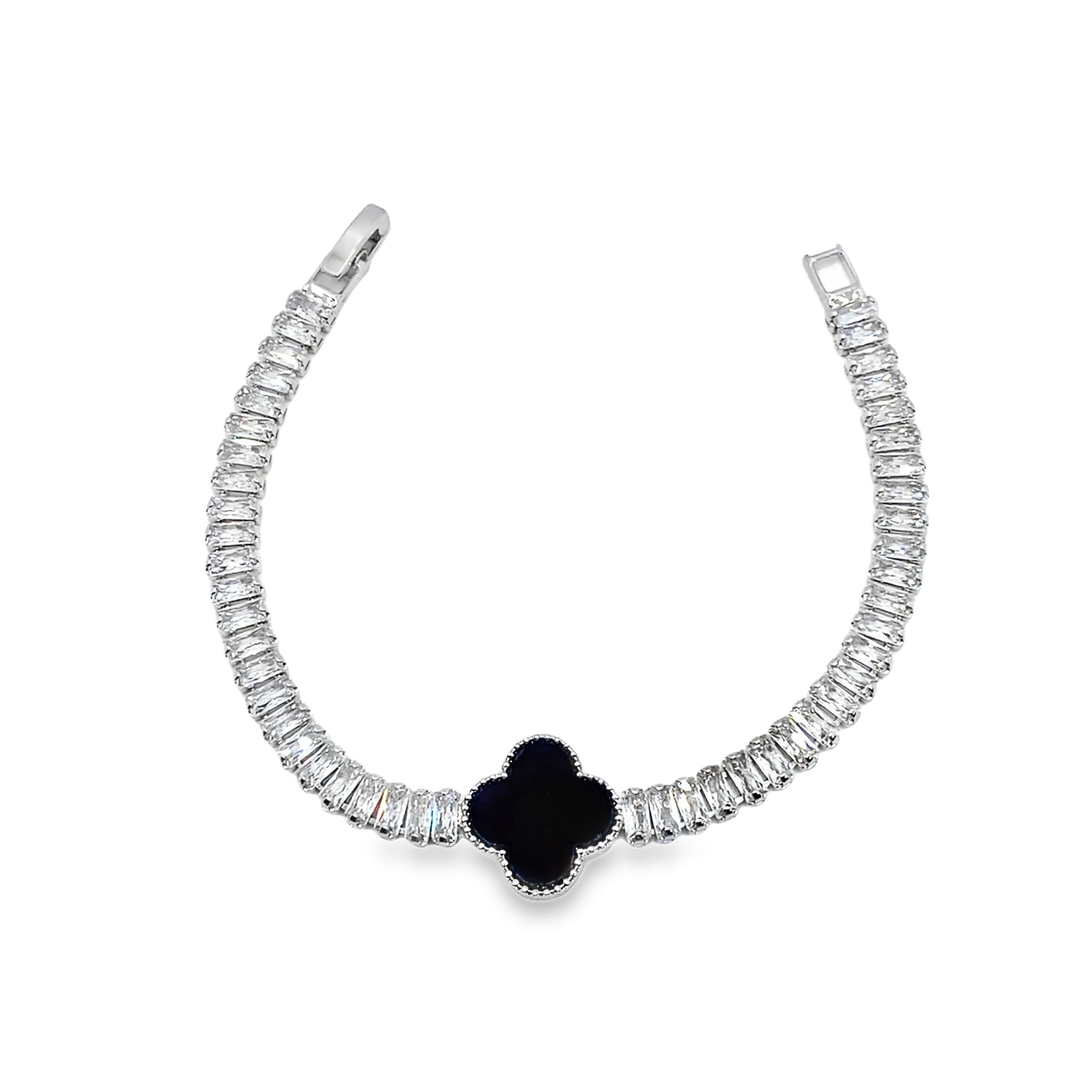 Bransoletka z białego złota z łańcuszkiem i diamentami w szlifie bagietkowym
