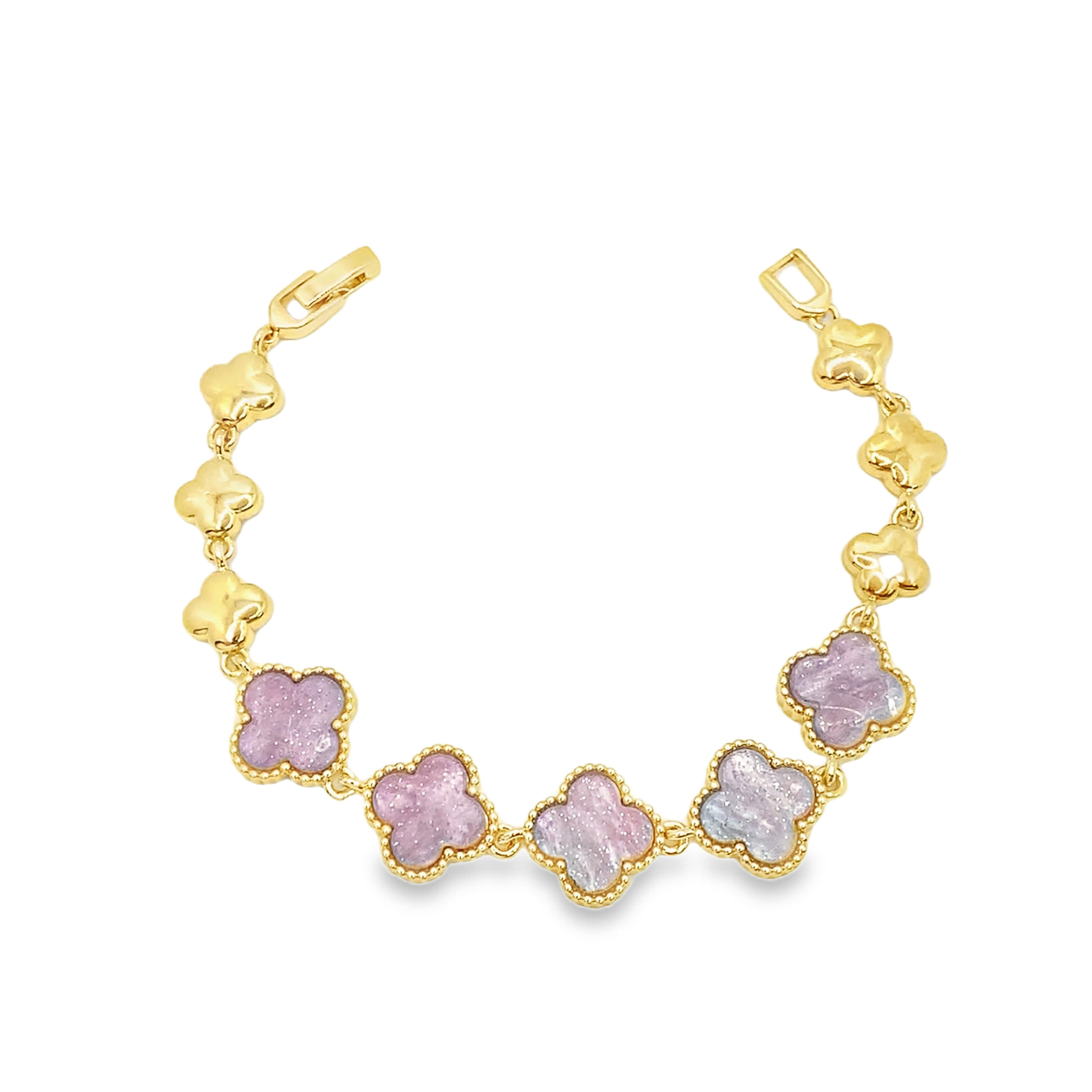 Bransoletka w kolorze żółtego złota z łańcuszkiem i fioletowymi akcentami kwarcu