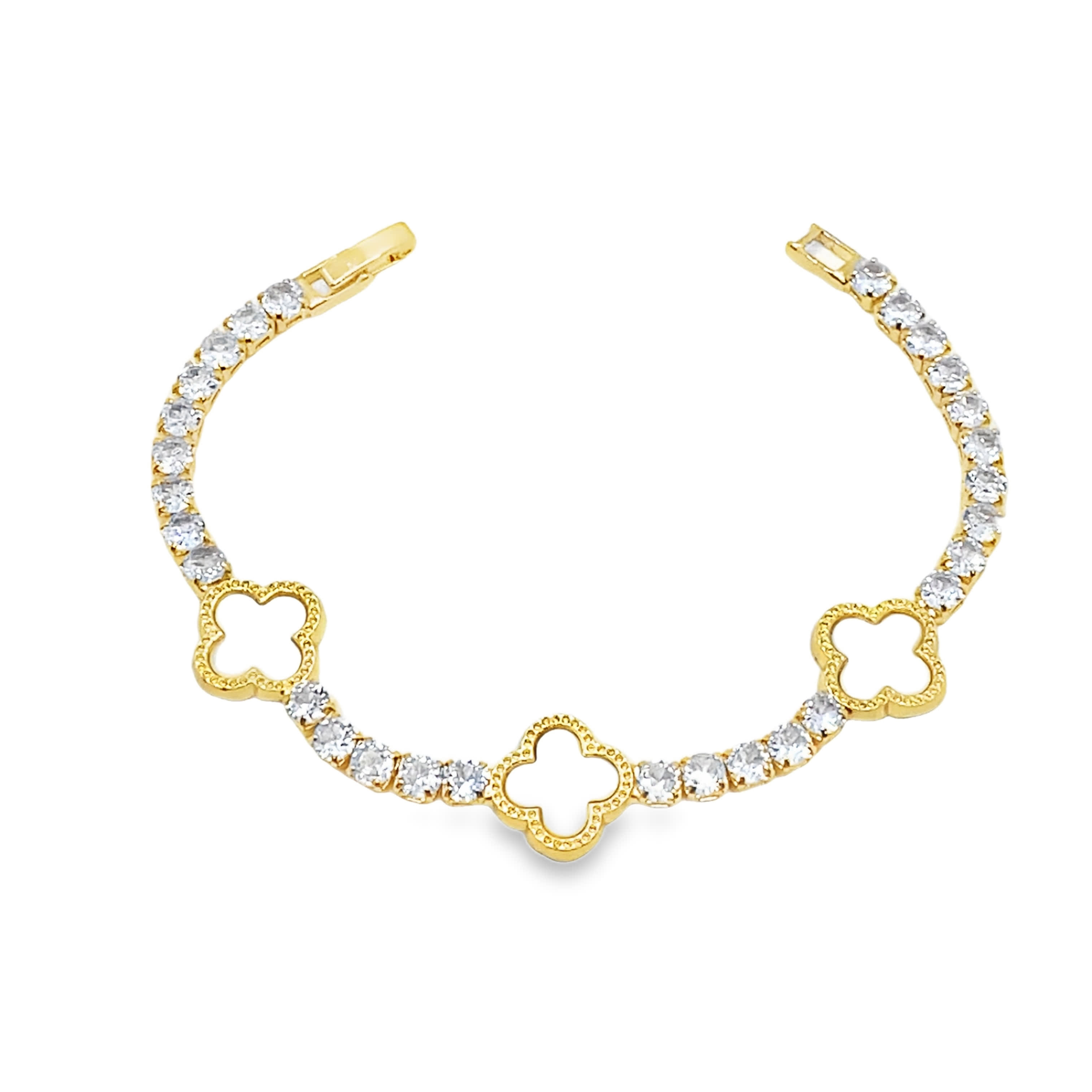 Bransoletka tenisowa w kolorze żółtego złota z diamentami i perłami