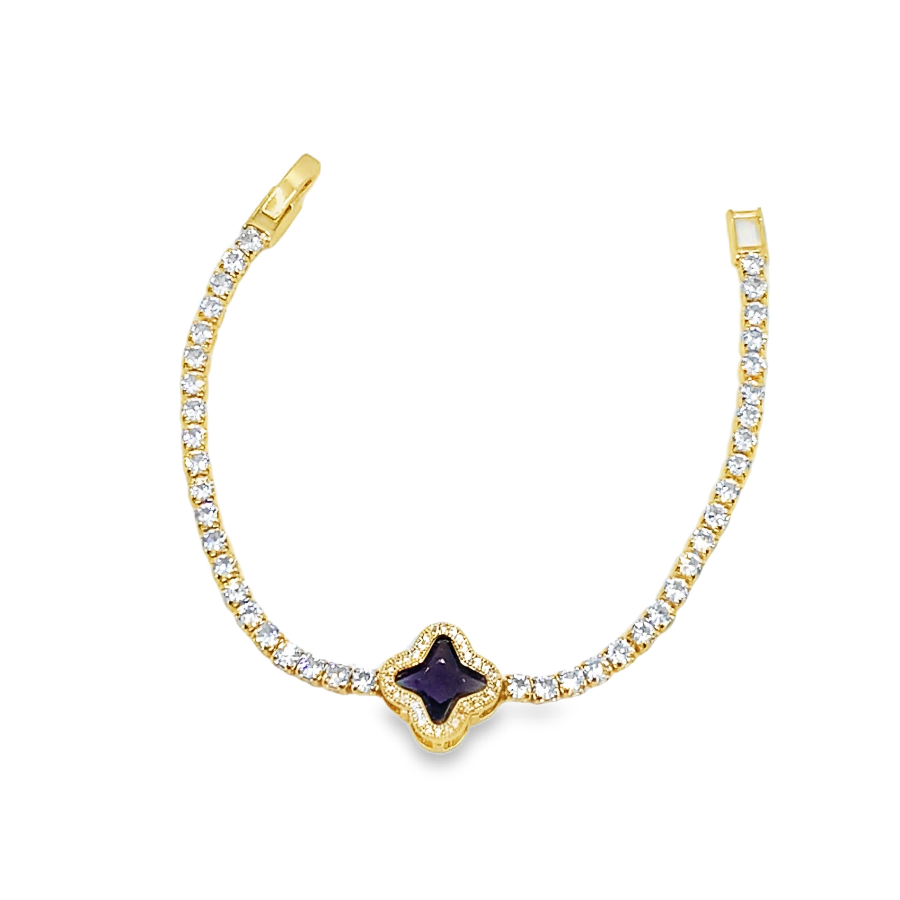 Bransoletka tenisowa Clover z diamentami i onyksem w żółtym złocie