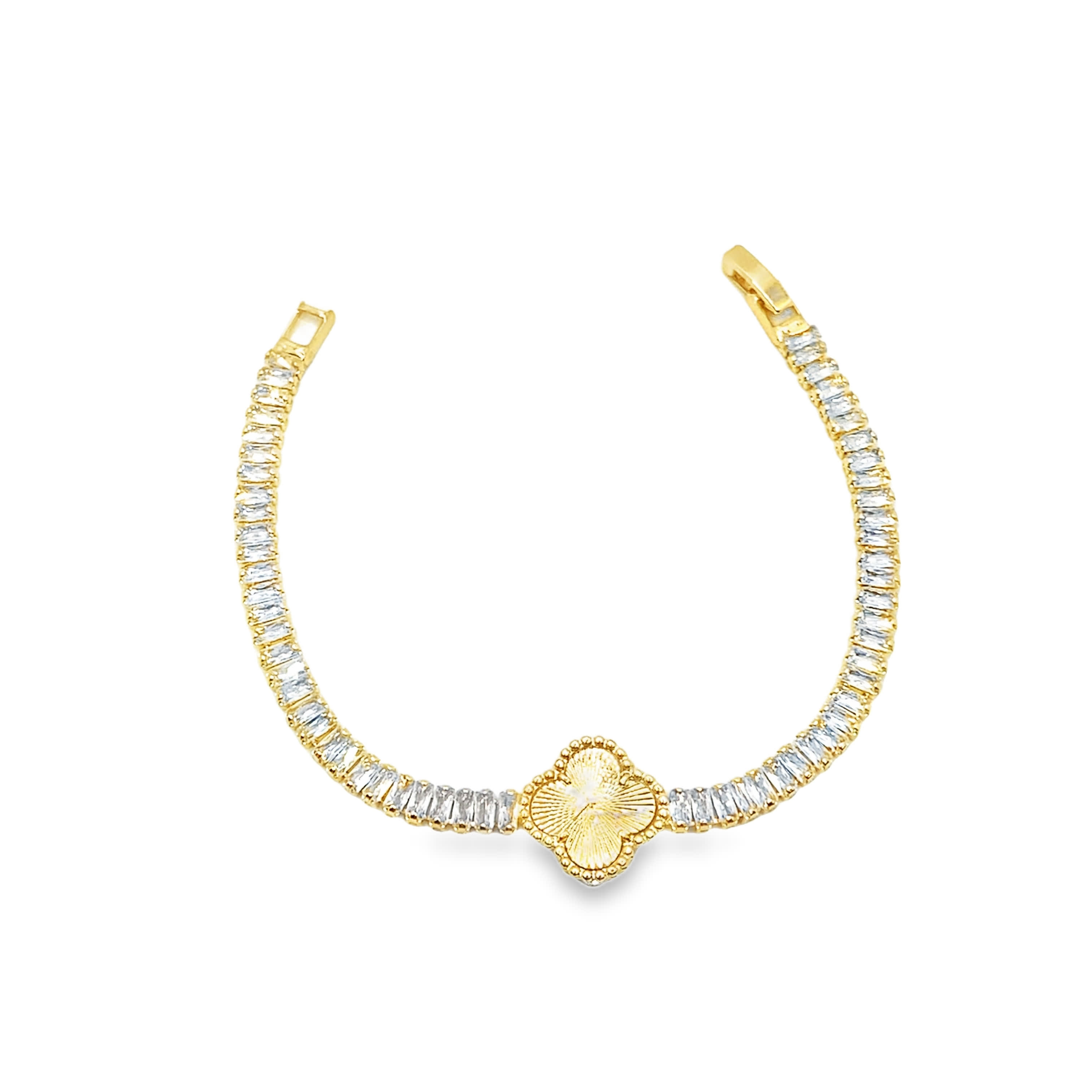 Bransoletka w kolorze żółtego złota z łańcuszkiem i diamentami o szlifie bagietkowym