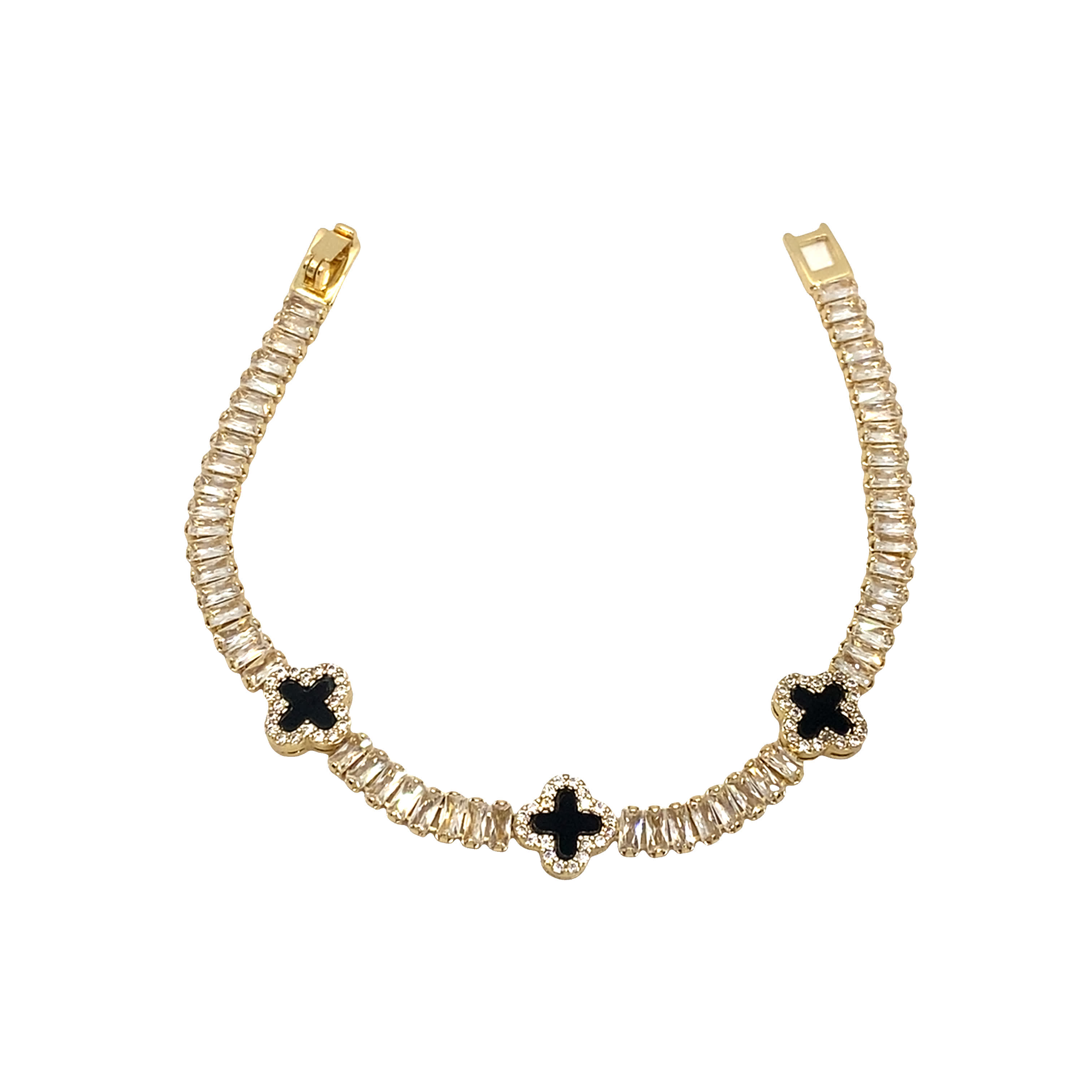 Bransoletka w kolorze żółtego złota z łańcuszkiem i diamentami w szlifie bagietkowym