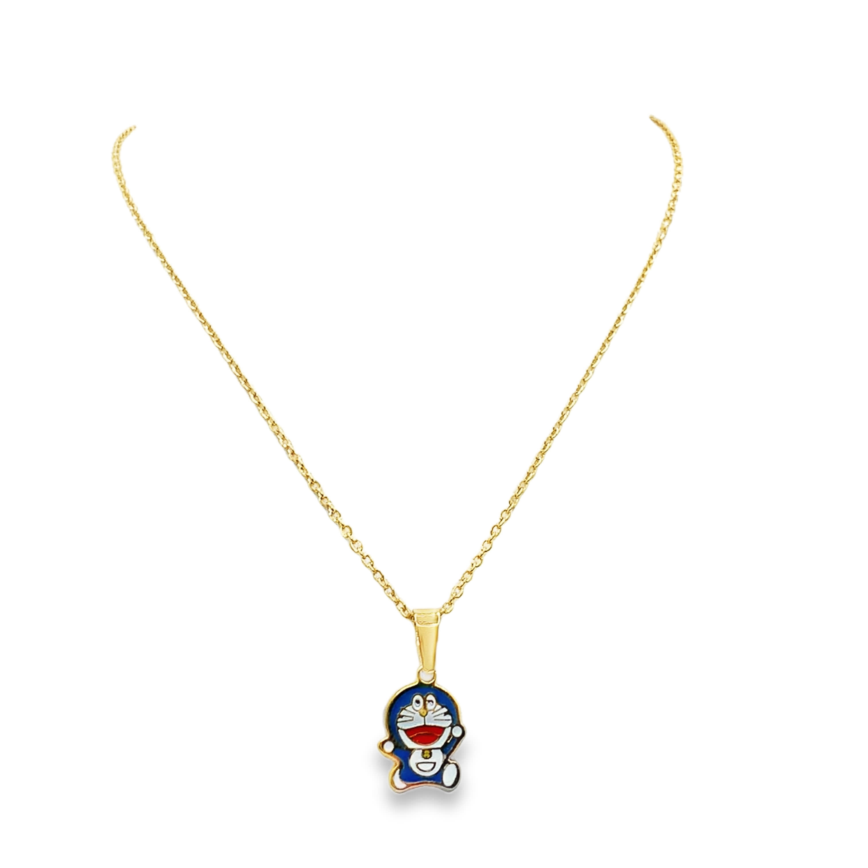 Fantazyjny naszyjnik z zawieszką Doraemon w żółtym złocie