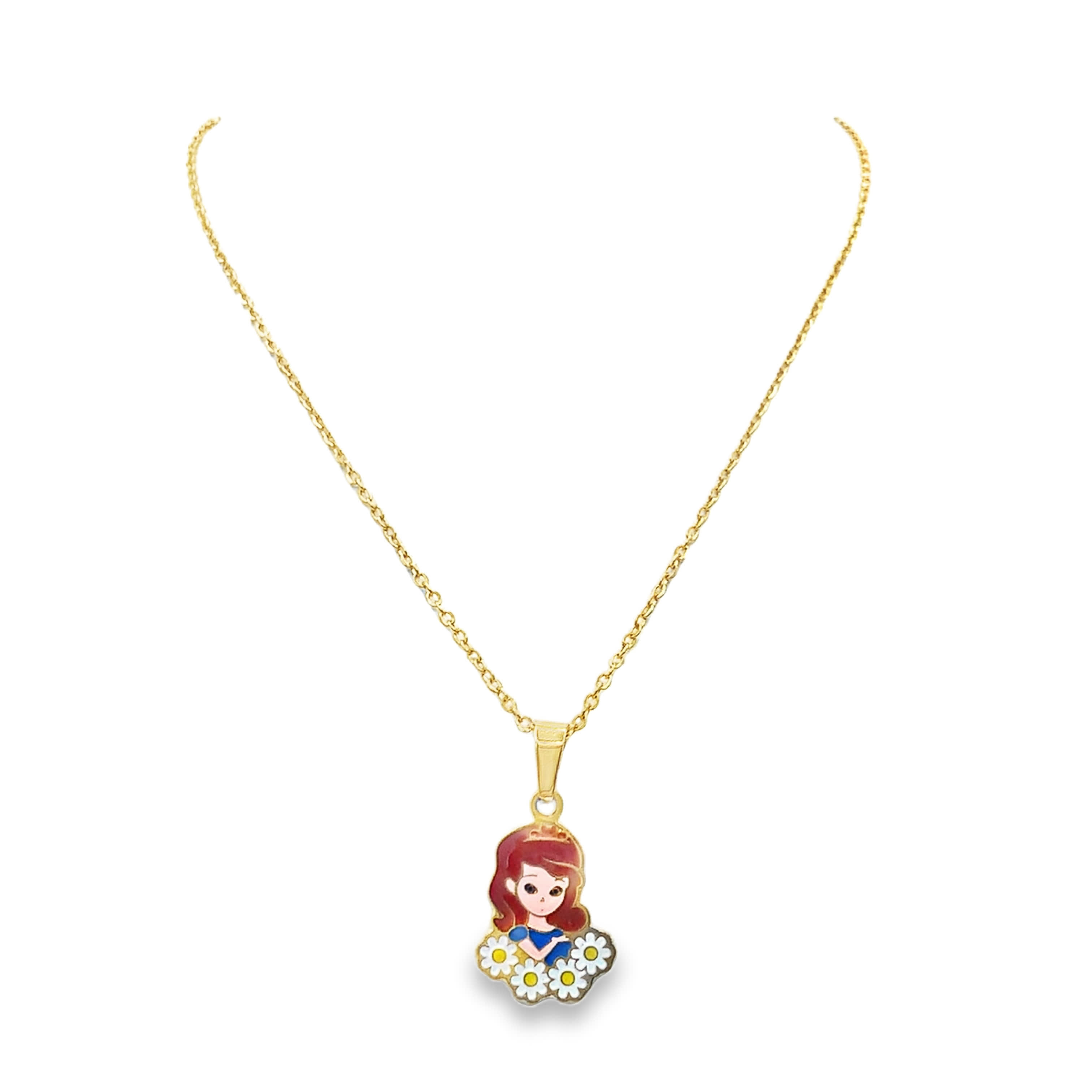 Naszyjnik z zawieszką dla dziewczynki z żółtego złota z wisiorkiem w kształcie postaci