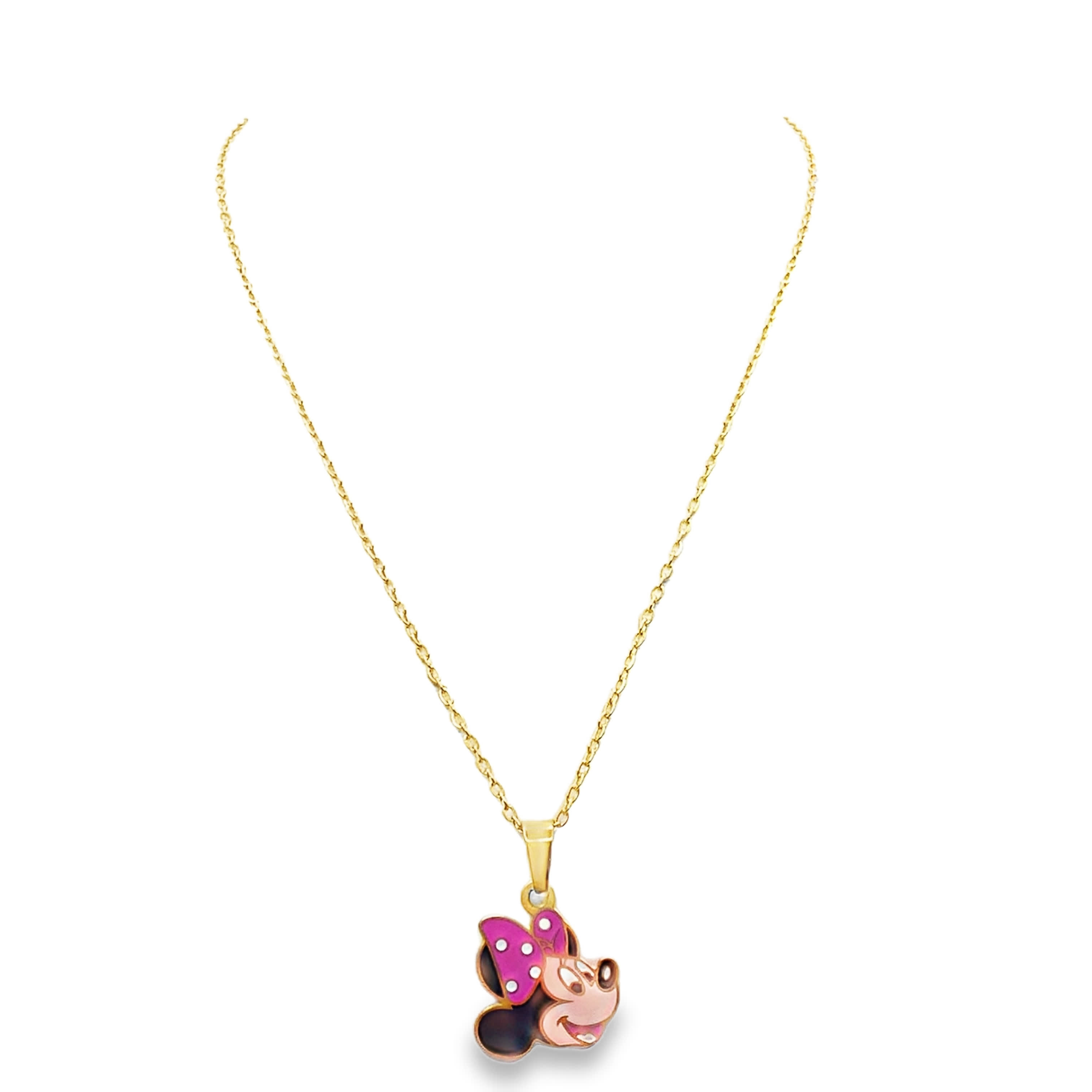 Fantazyjny naszyjnik z zawieszką Myszki Minnie z żółtego złota