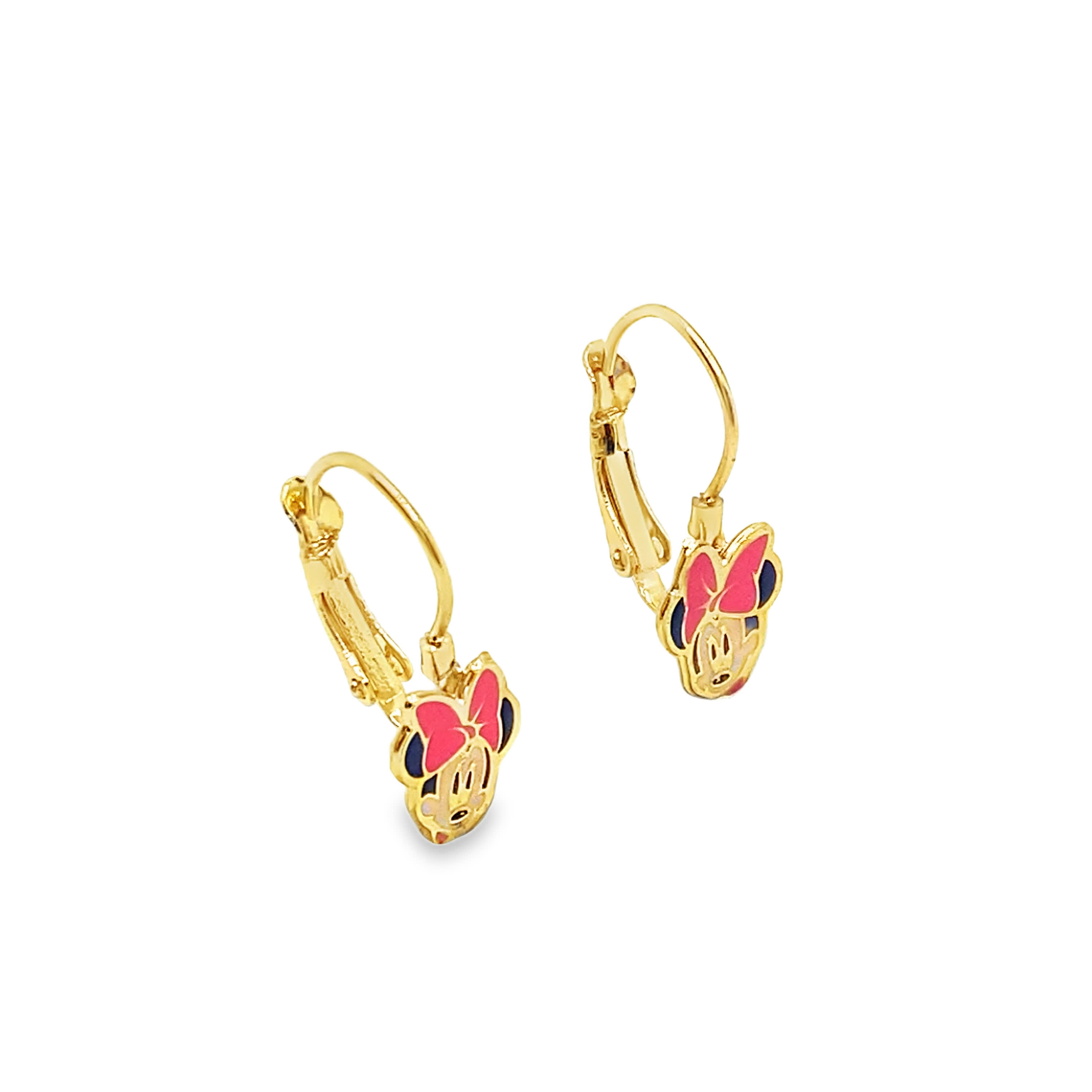 Kolczyki wiszące z żółtego złota z kolorowymi rysunkami