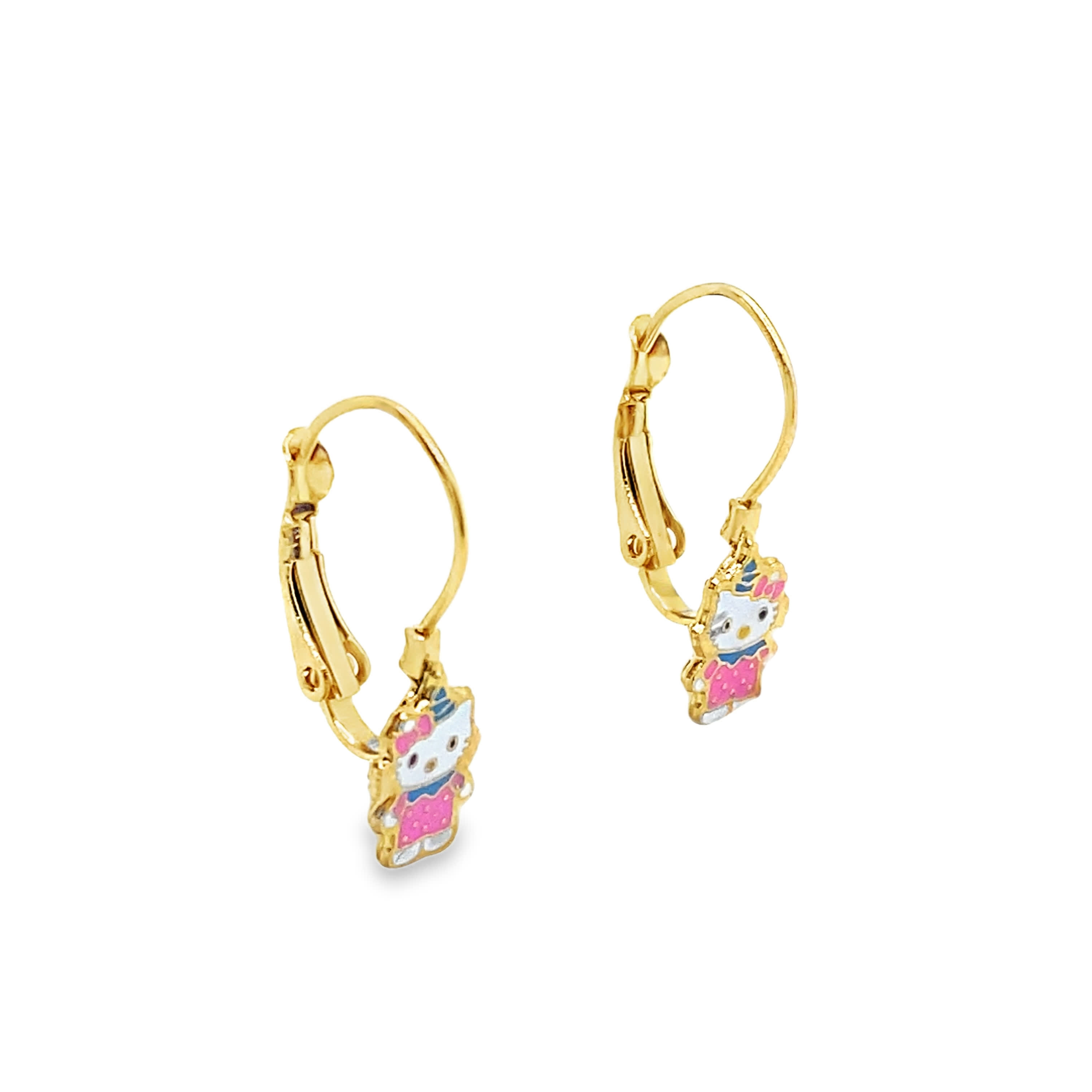 Kolczyki wiszące z żółtego złota z emalią „Hello Kitty”