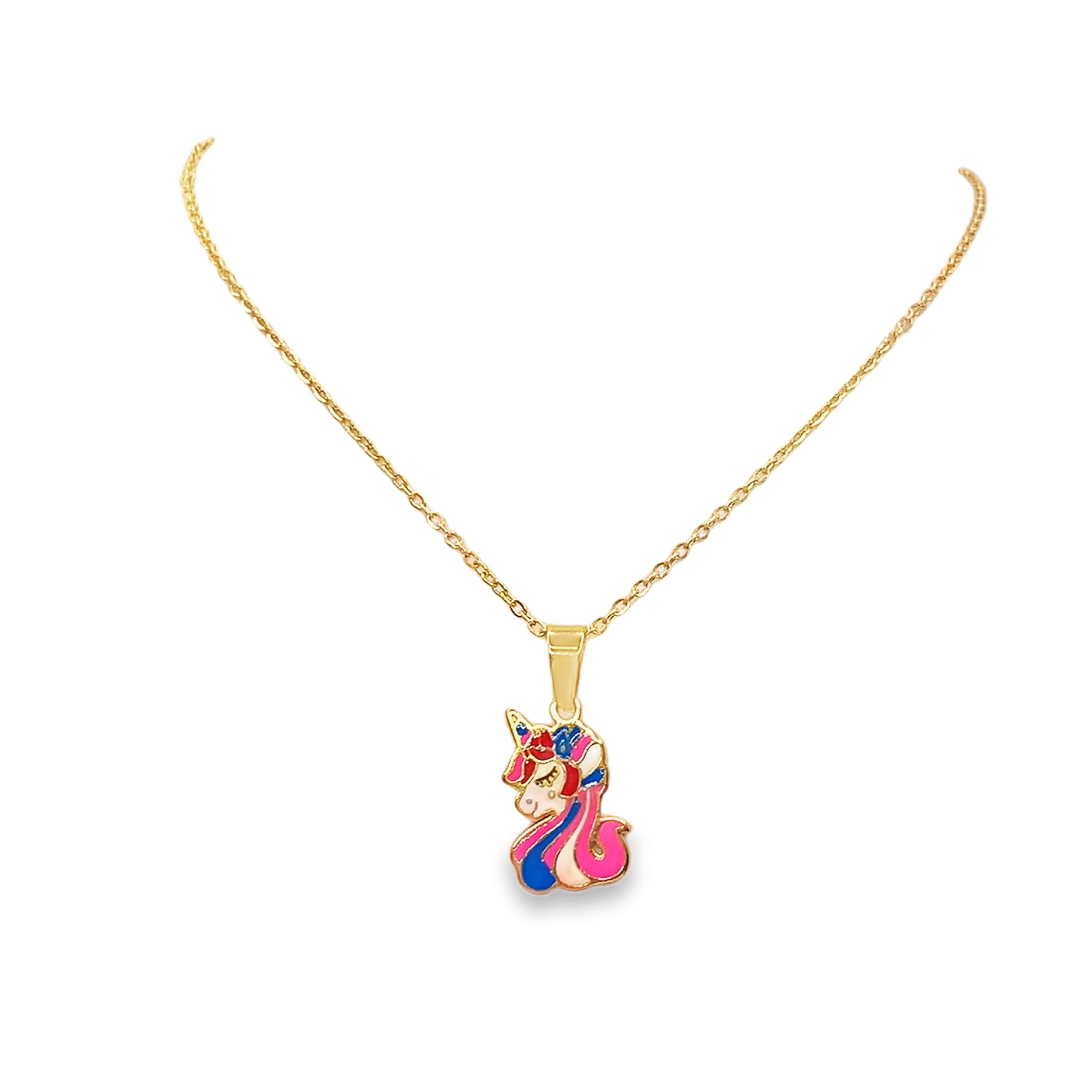 Fantazyjny naszyjnik z zawieszką w kształcie jednorożca w żółtym złocie