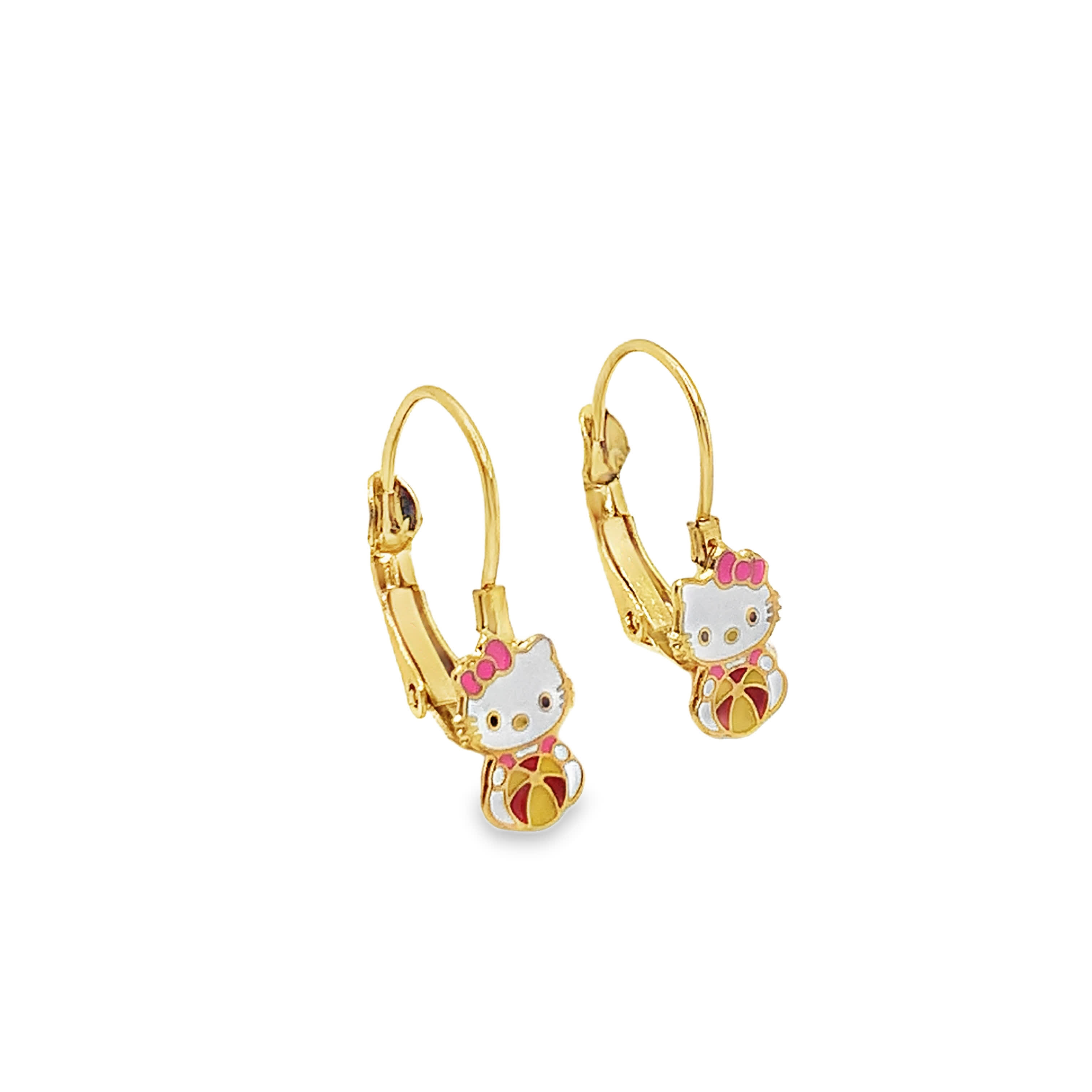 Kolczyki wiszące Hello Kitty z żółtego złota