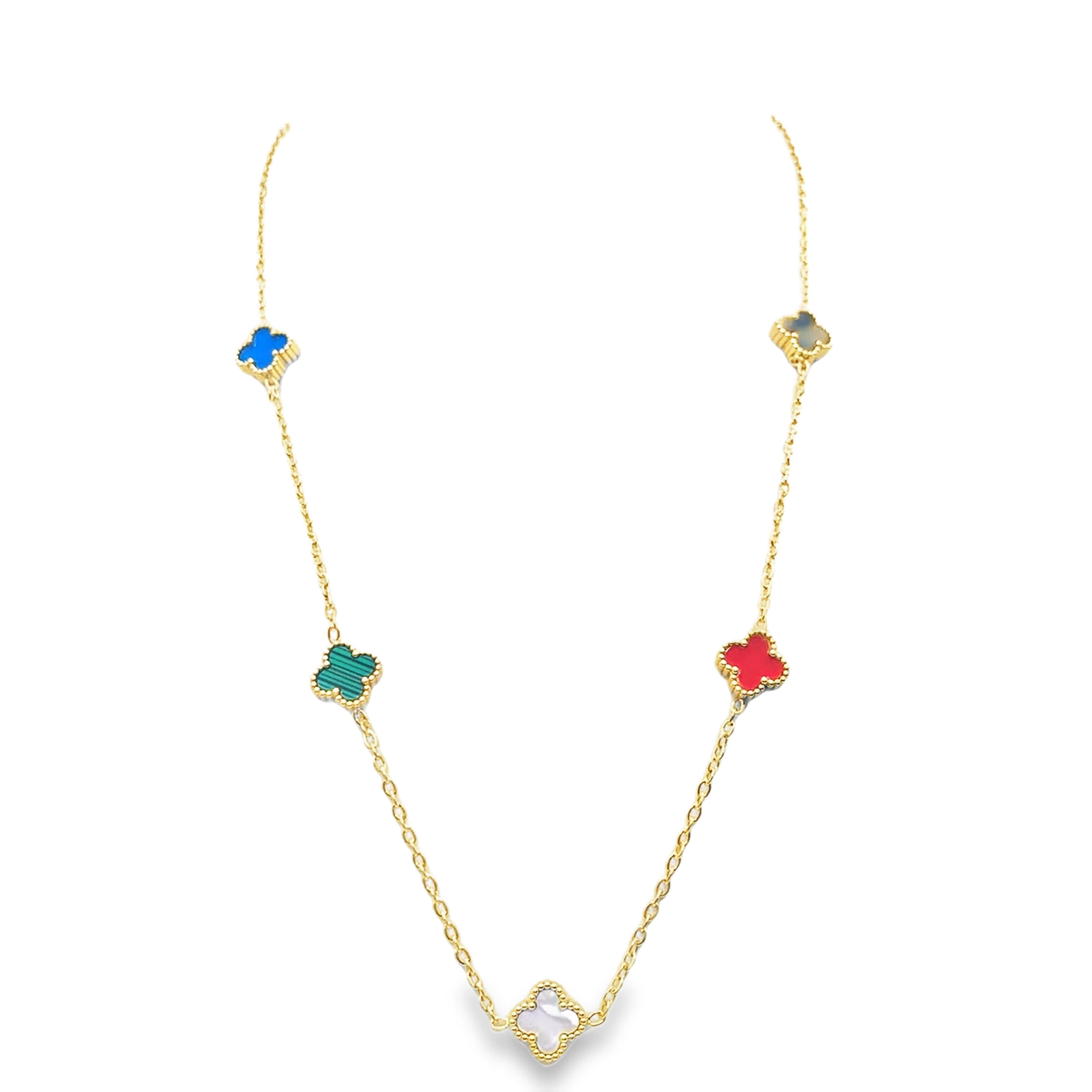 Naszyjnik z żółtego złota z kolorowymi koniczynkami