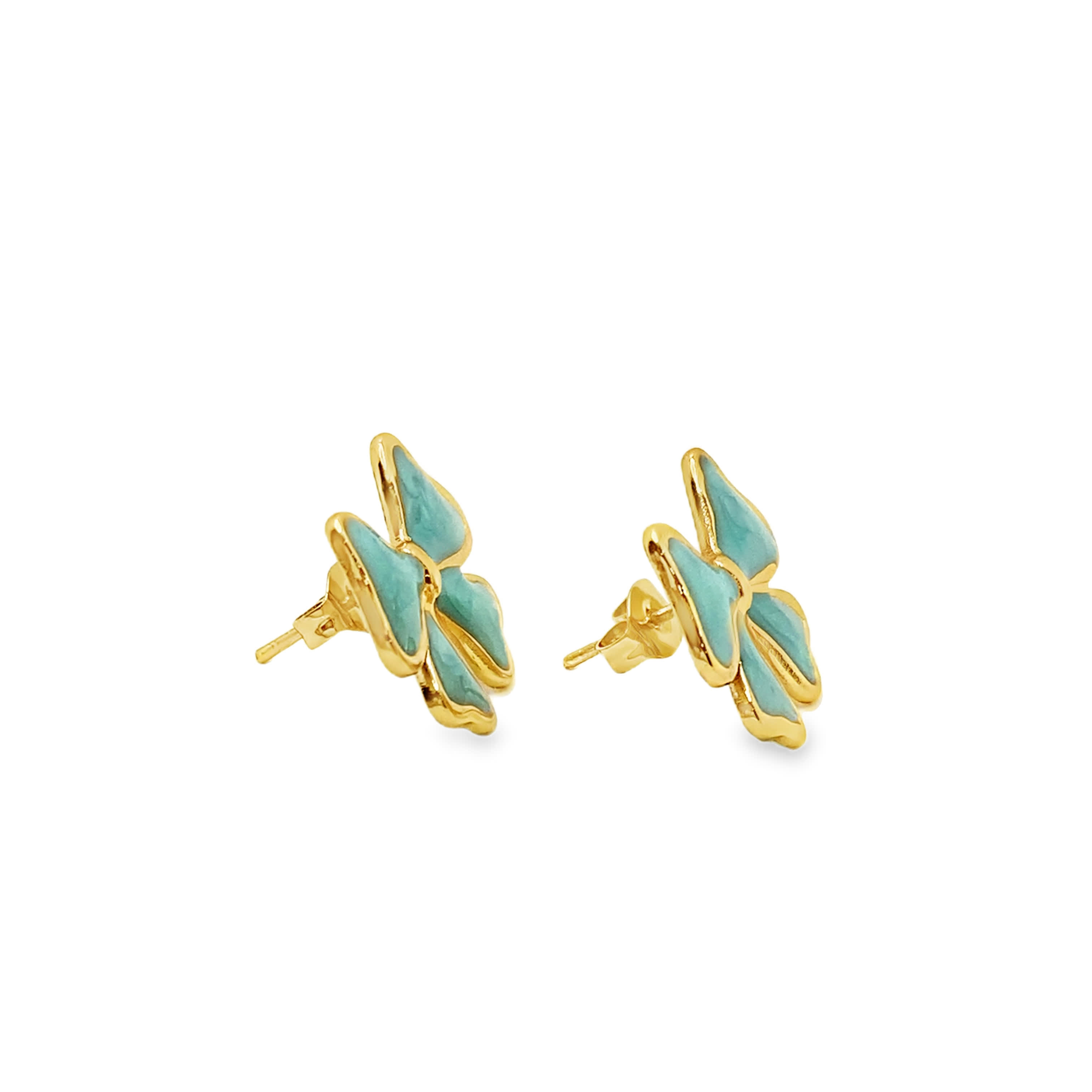 Kolczyki sztyfty z żółtego złota z turkusową emalią