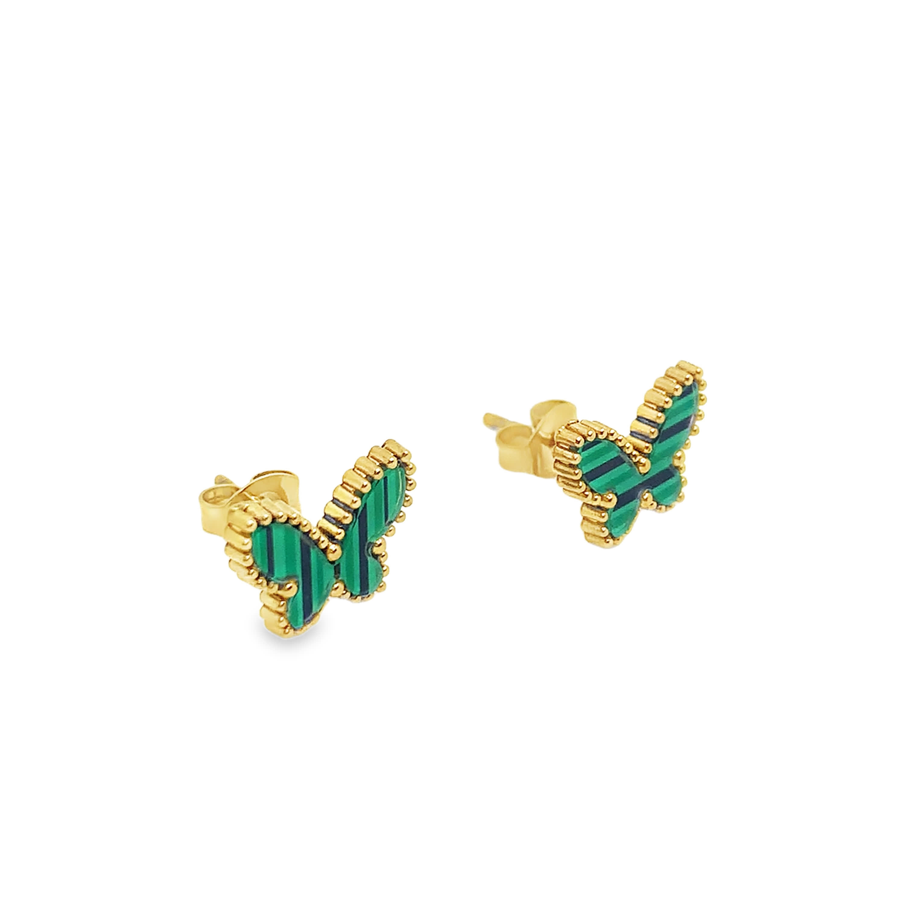 Kolczyki sztyfty z metalu z kamieniami malachitowymi