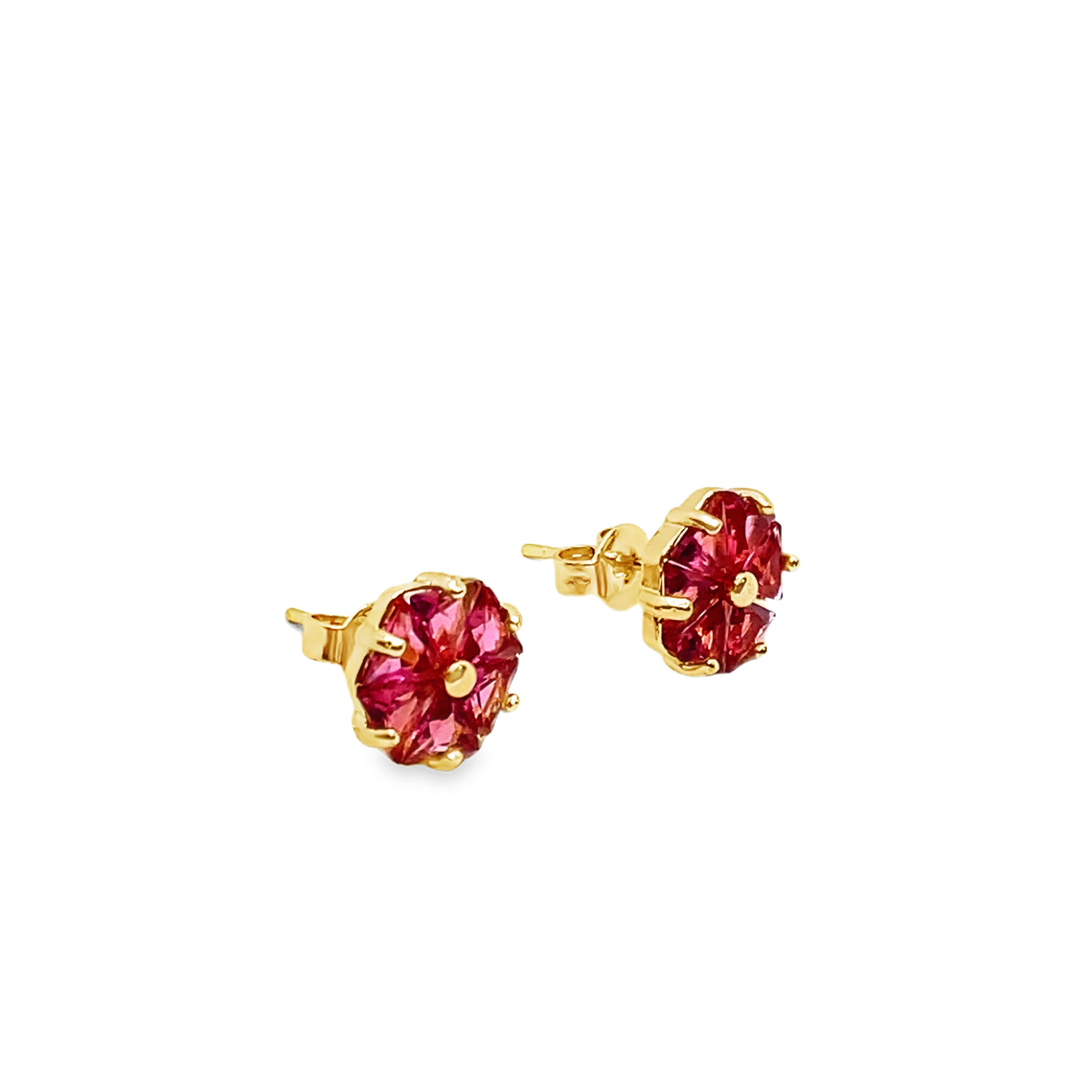 Kolczyki sztyfty z metalu z czerwonymi rubinami o okrągłym szlifie