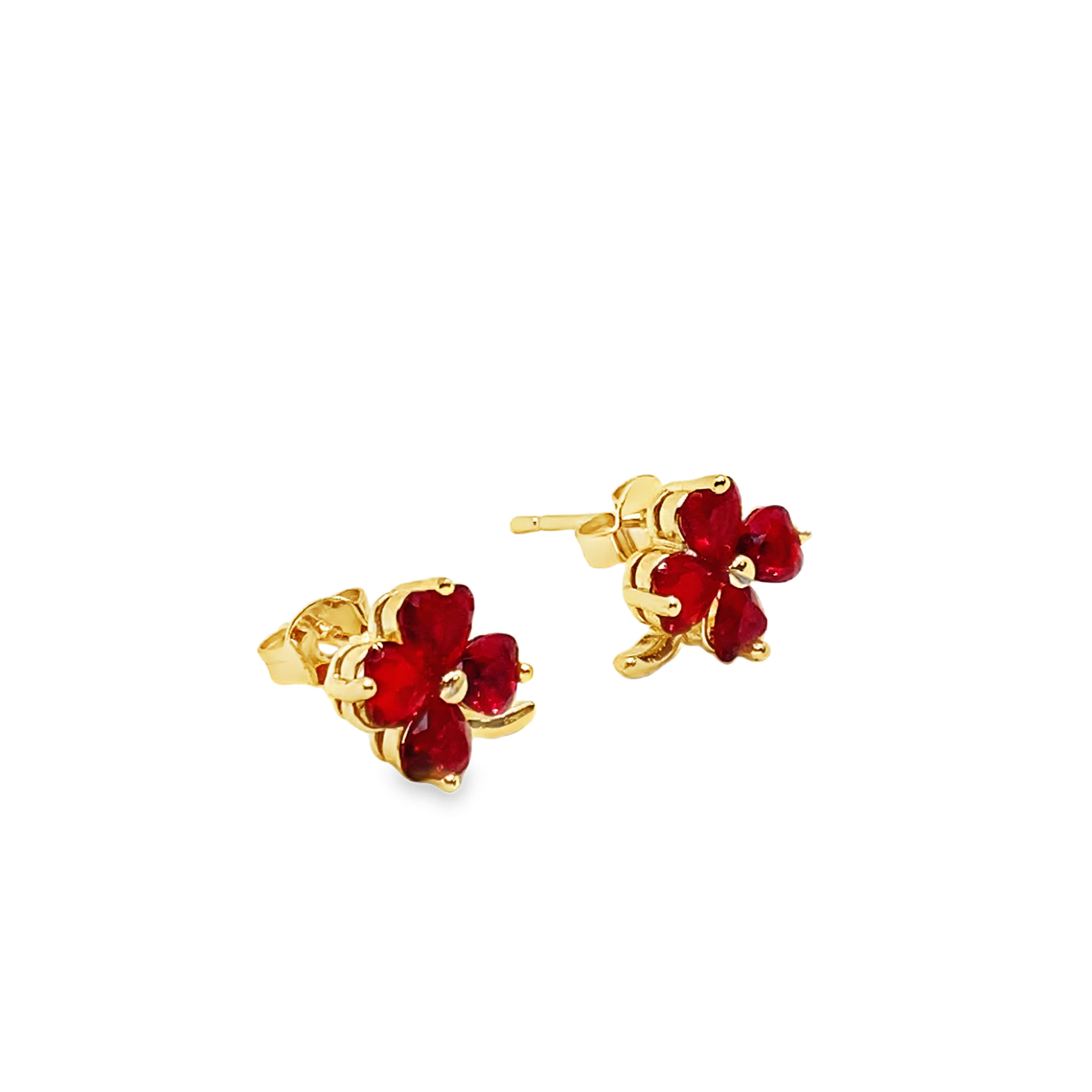 Kolczyki sztyfty z metalu z rubinami w kształcie serca
