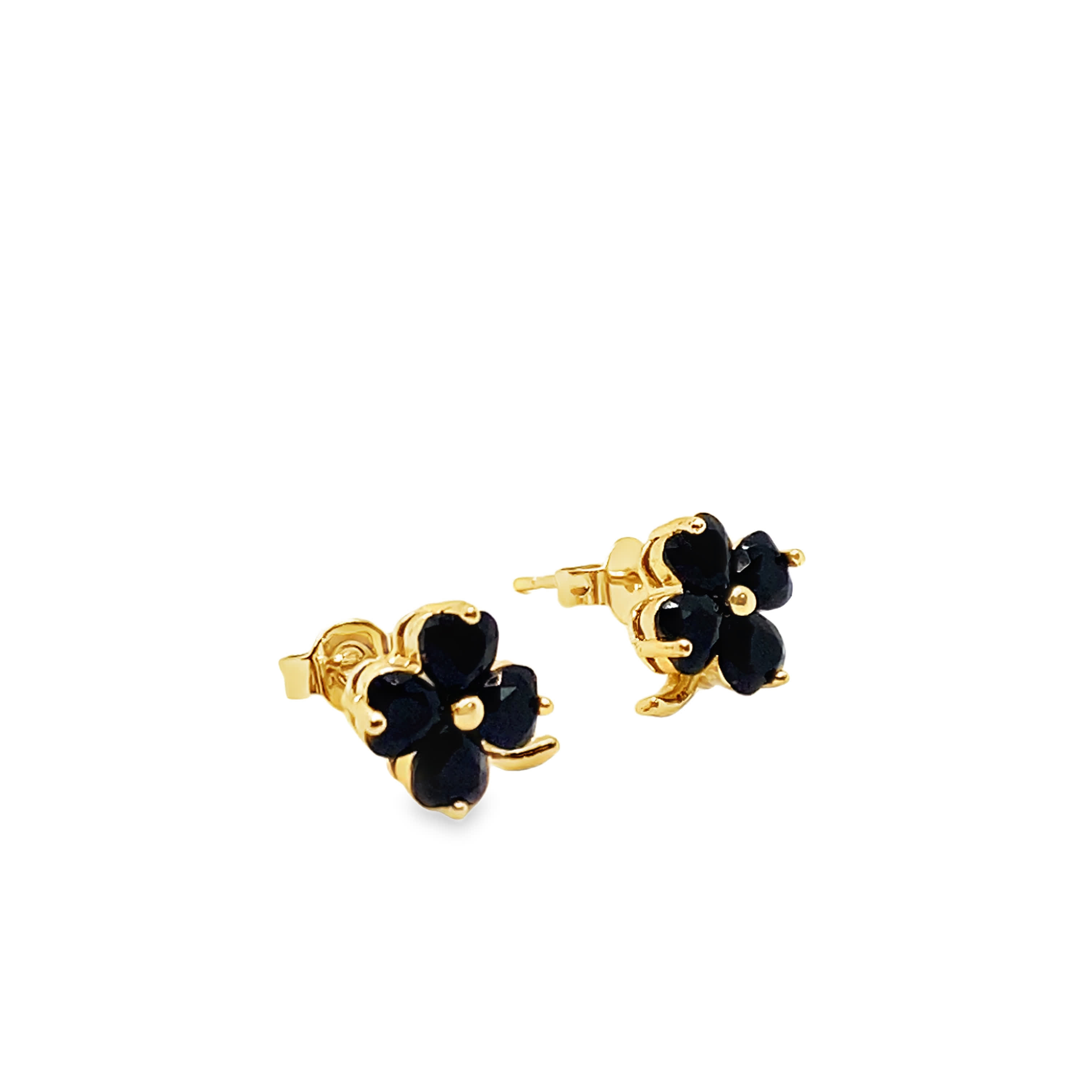 Kolczyki sztyfty z metalu z niebieskimi szafirami w kształcie koniczyny