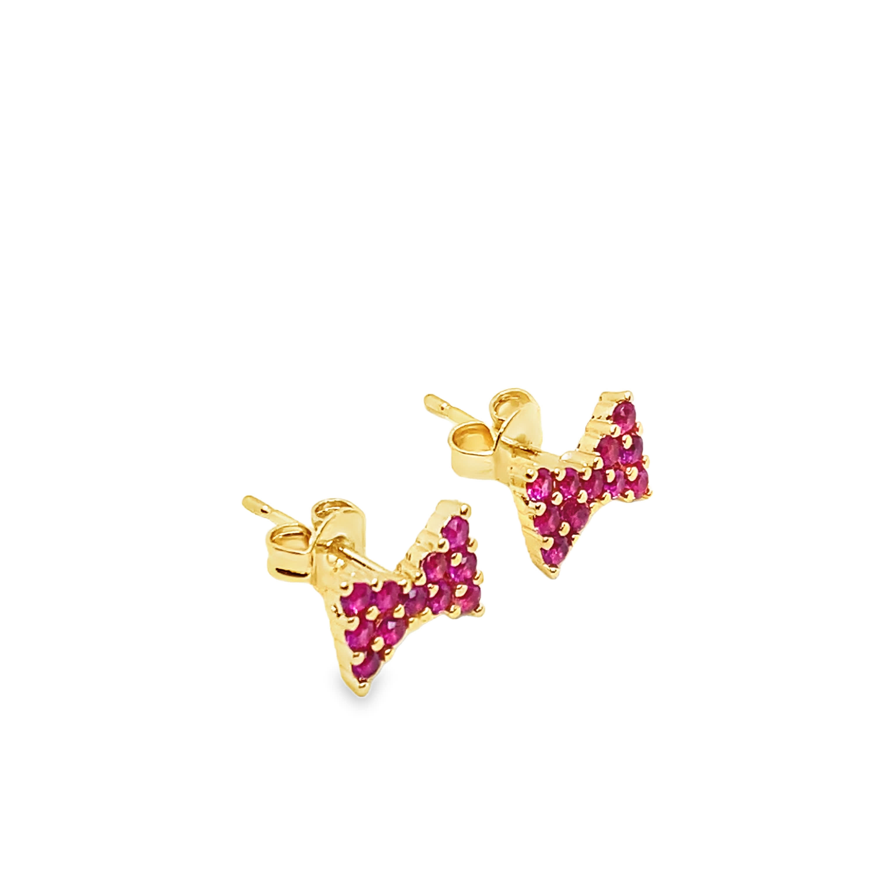 Kolczyki sztyfty z metalu z czerwono-fioletowymi okrągłymi klastrami rubinów