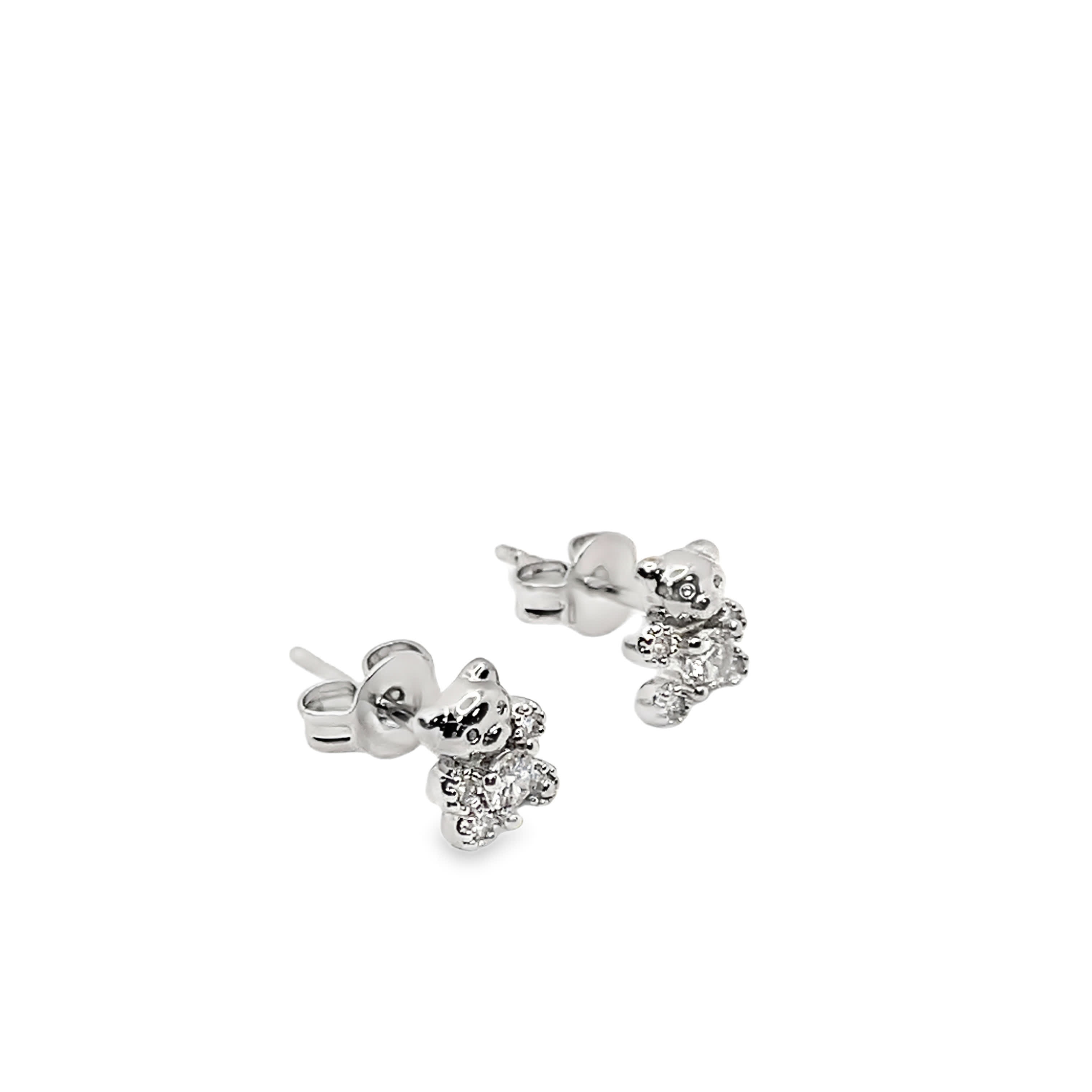 Kolczyki z cyrkoniaami w kształcie misia, posrebrzane białym złotem