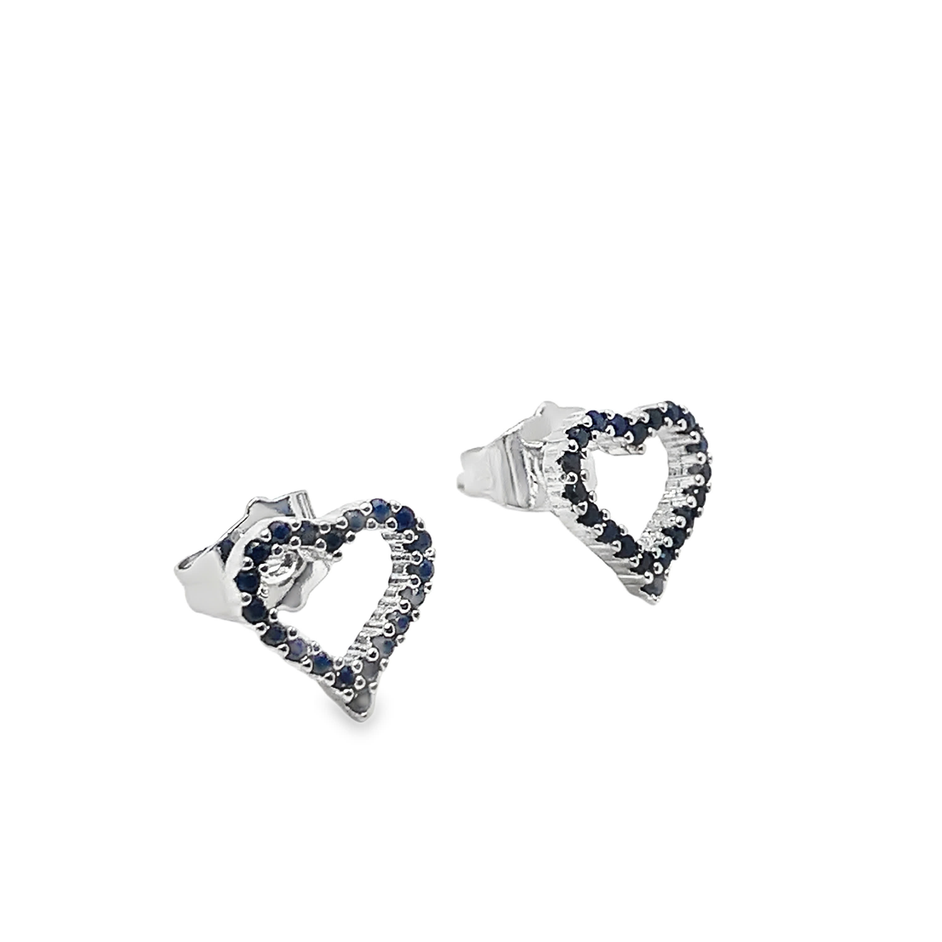 Kolczyki w kształcie serca z ciemnoniebieskimi szafirami, białe złoto