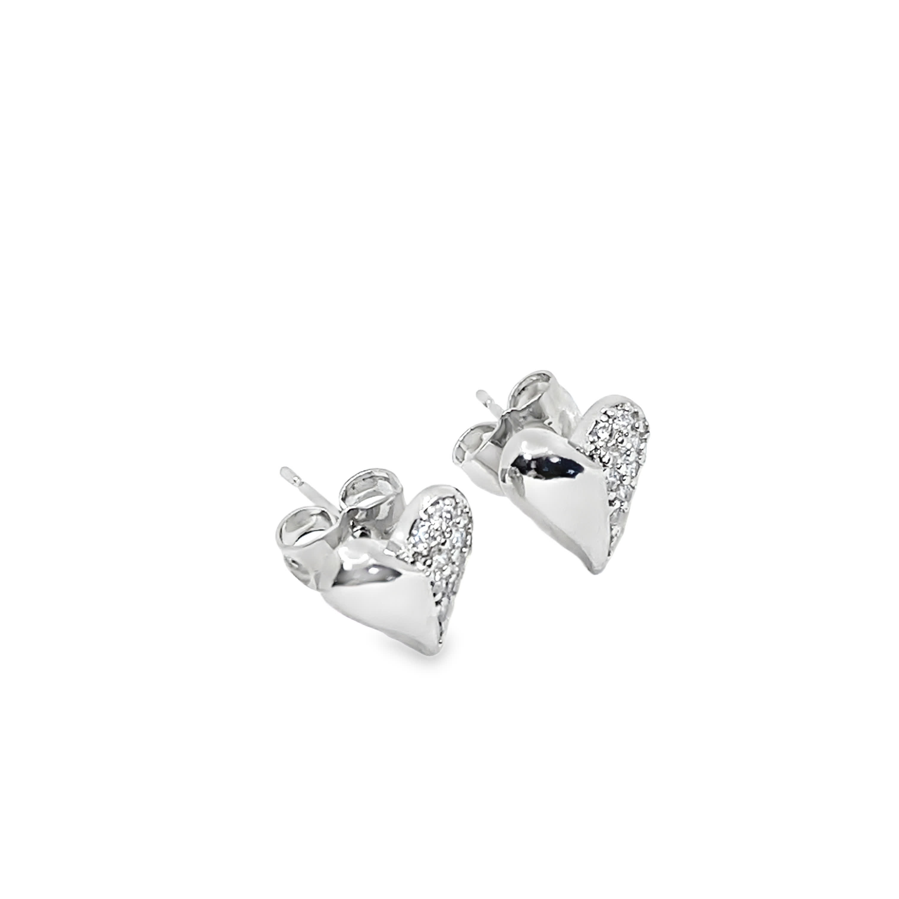 Kolczyki w kształcie serca z cyrkoniaami, posrebrzane białym złotem