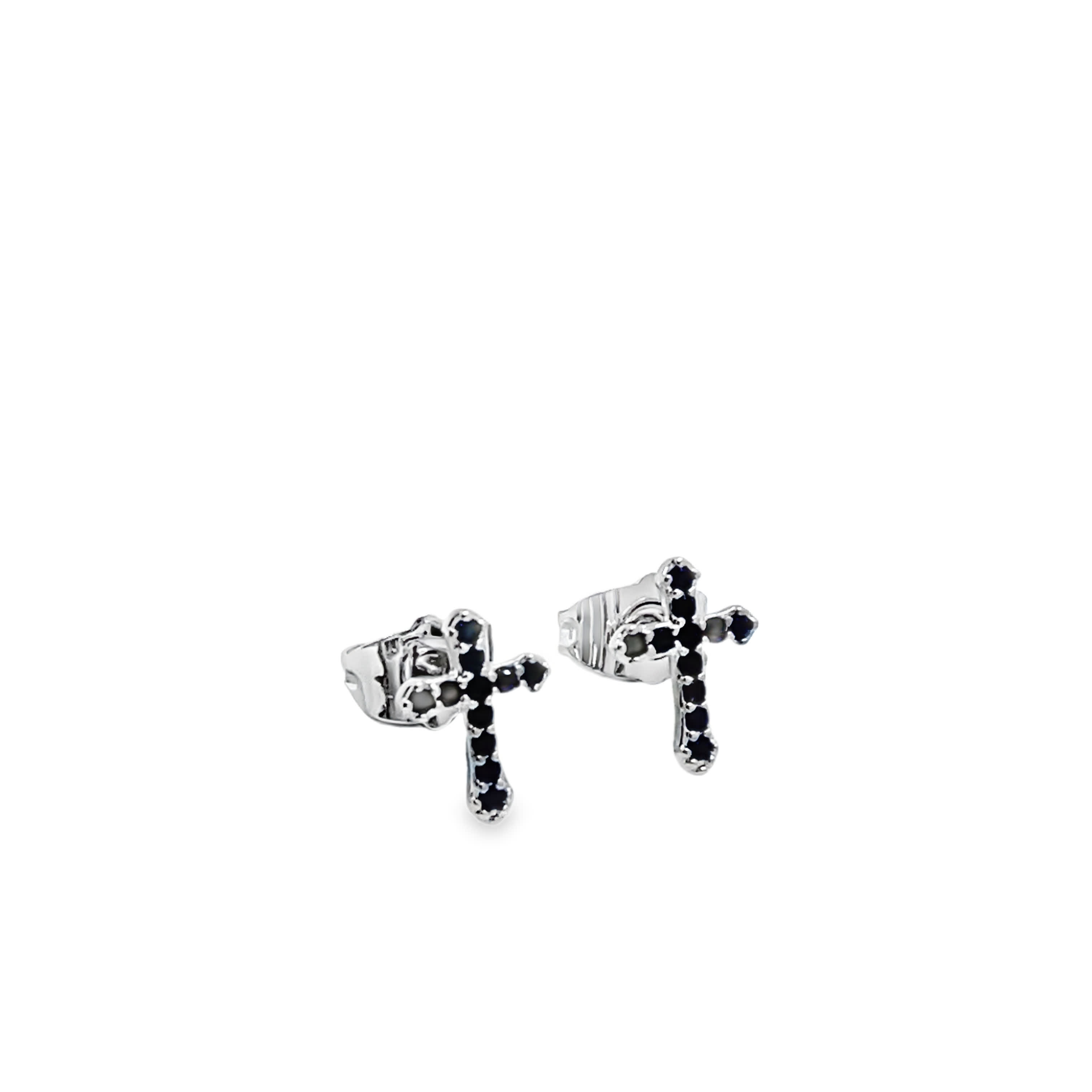 Kolczyki z cyrkoniaowym wzorem krzyża, posrebrzane białym złotem