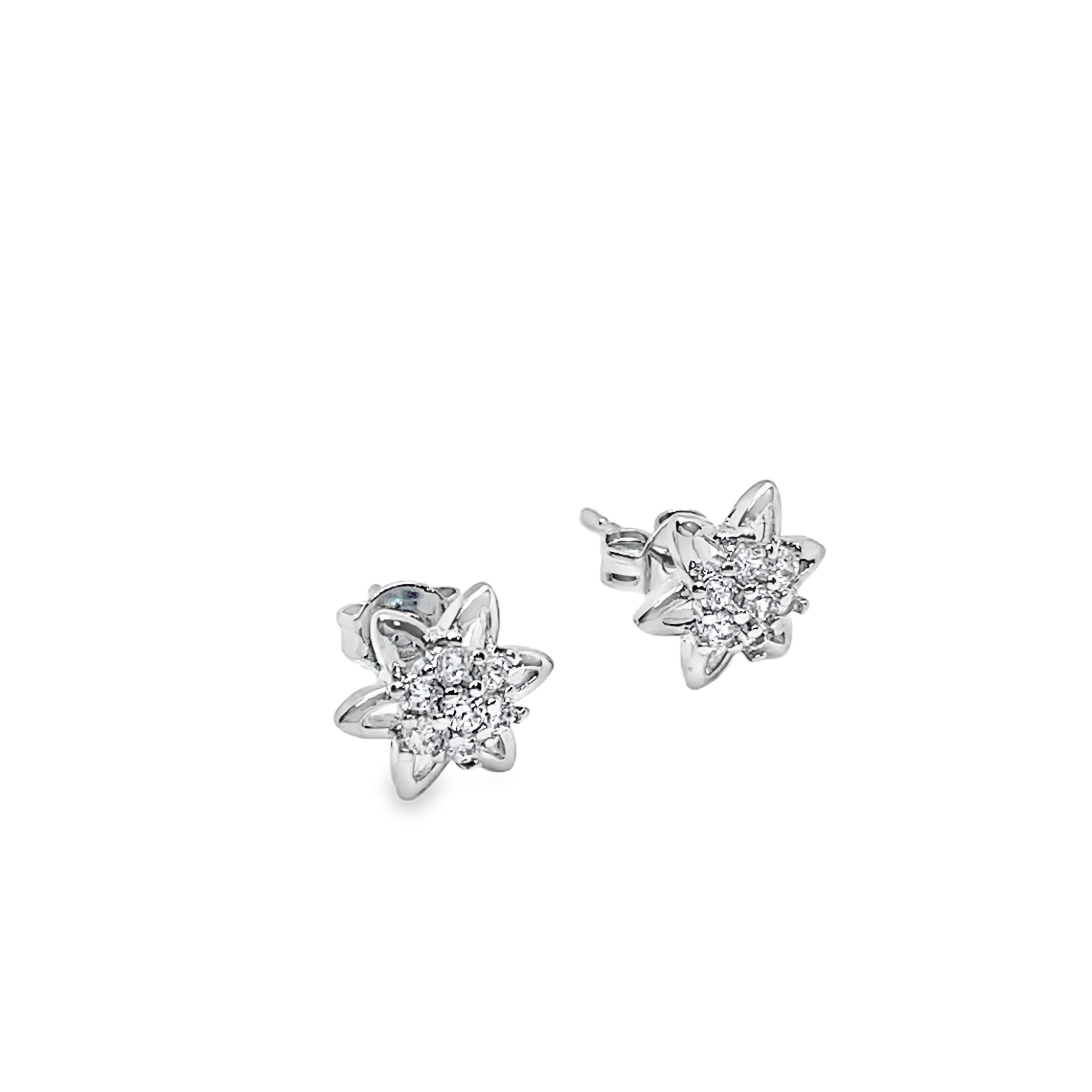 Kolczyki w kształcie kwiatu z cyrkoniaami, białe złoto