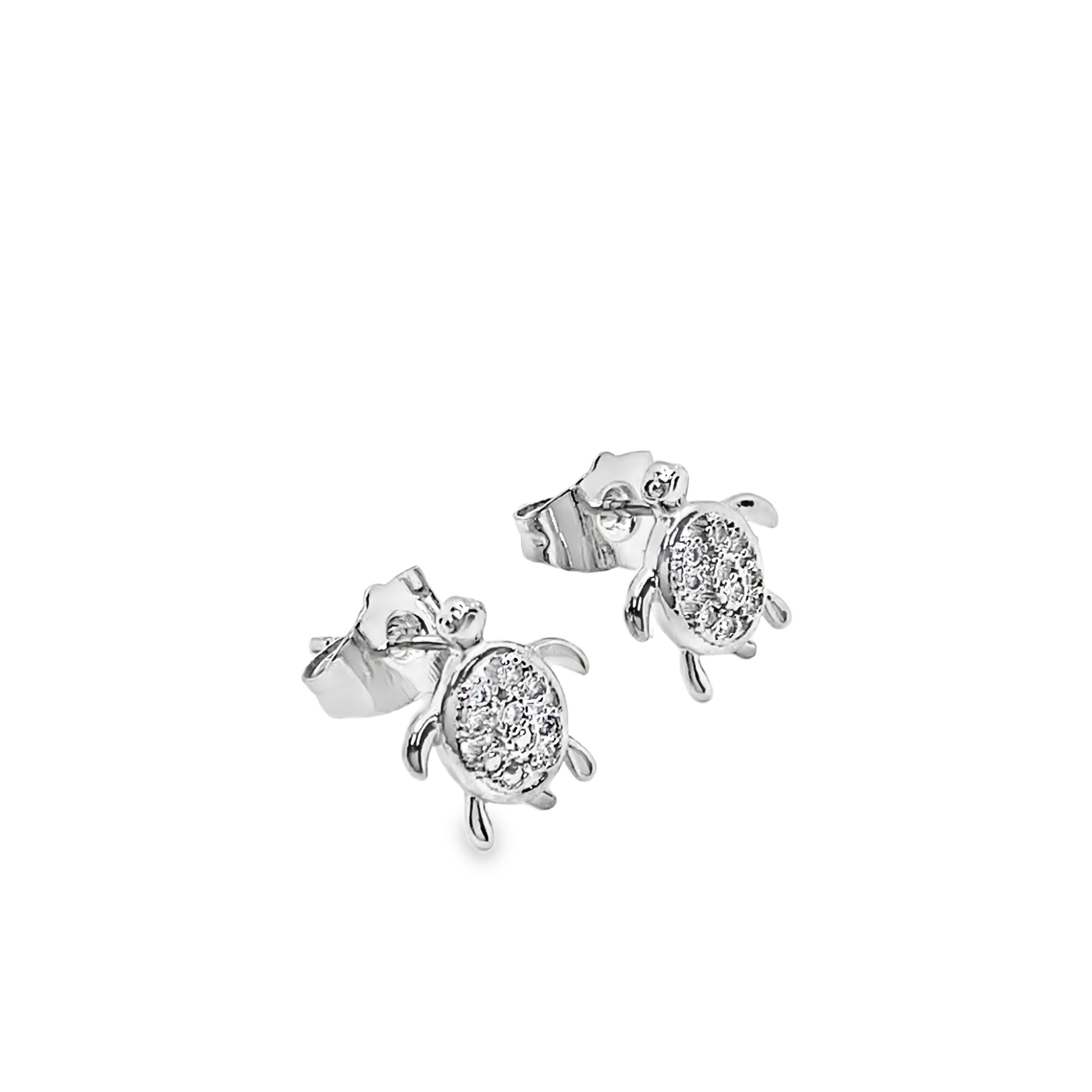 Kolczyki sztyfty z żółwiem i kryształkiem