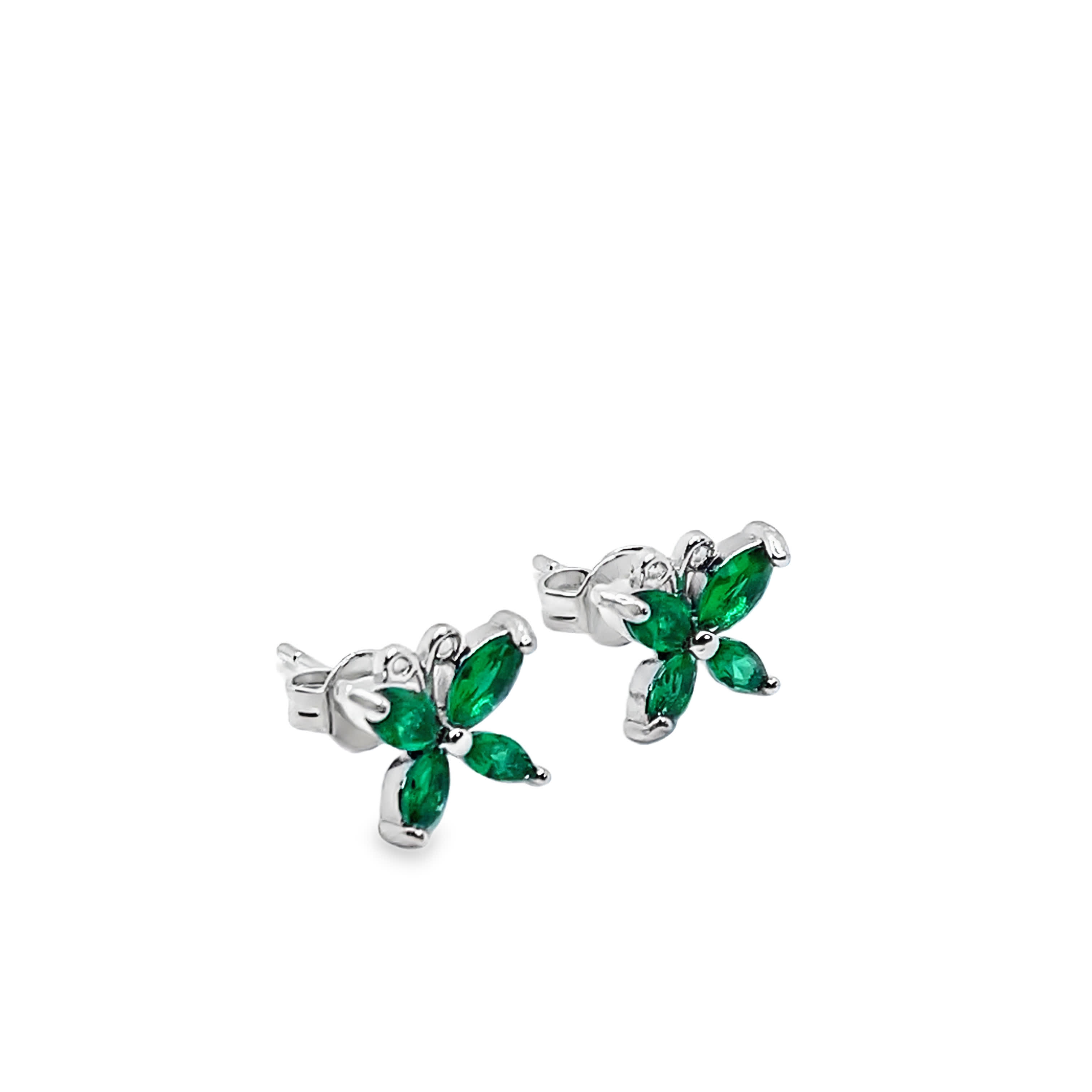 Kolczyki sztyfty z motylem i szmaragdowym akcentem