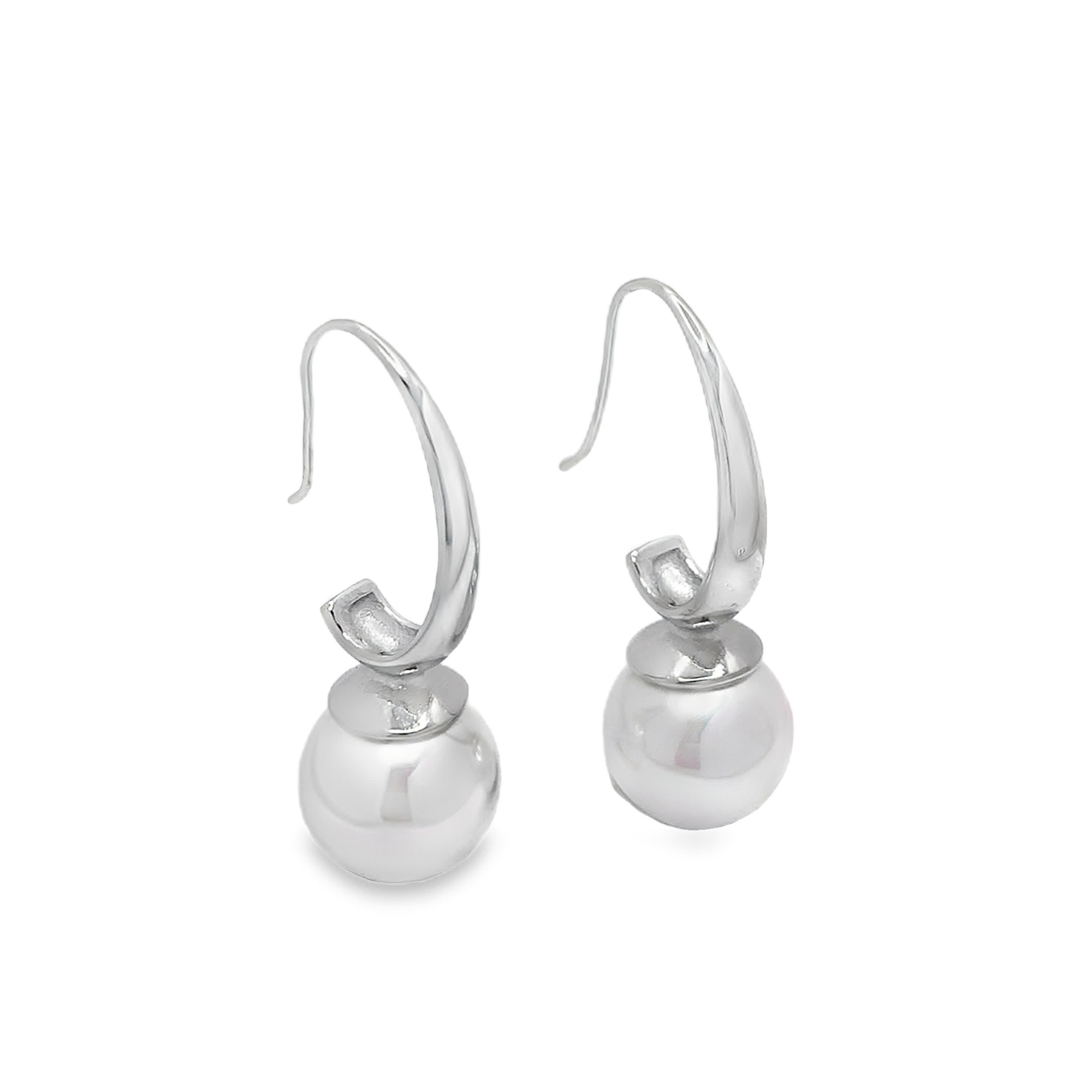 Metalowe kolczyki wiszące z okrągłymi perłami kaboszonowymi
