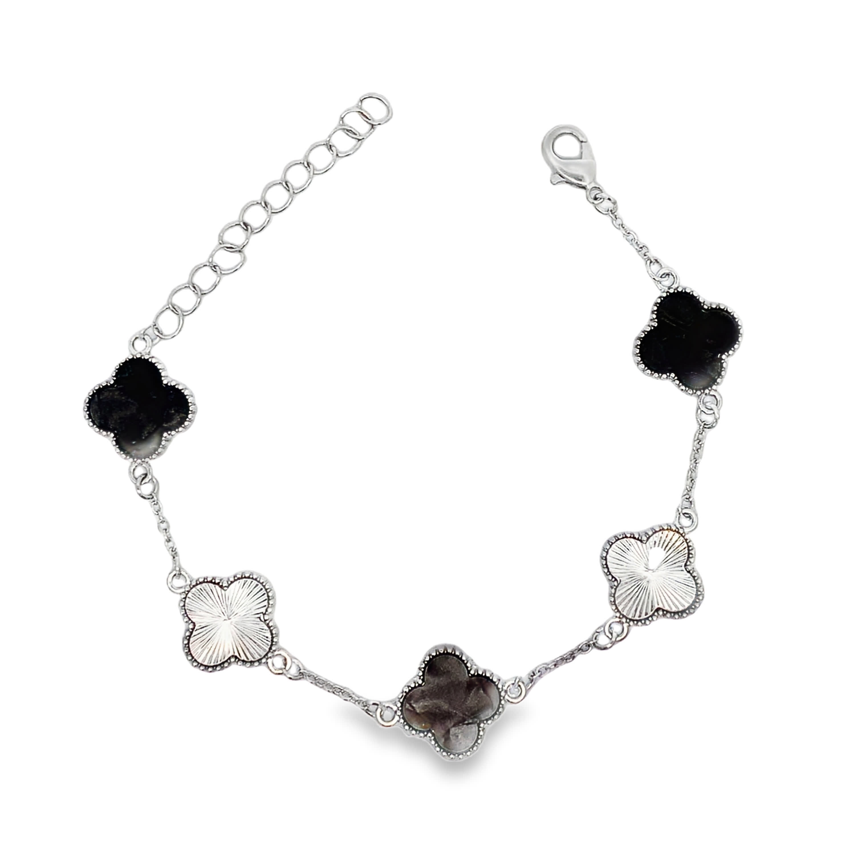 Sterling Silver Chain Bracelet with Onyx Clover Motifs