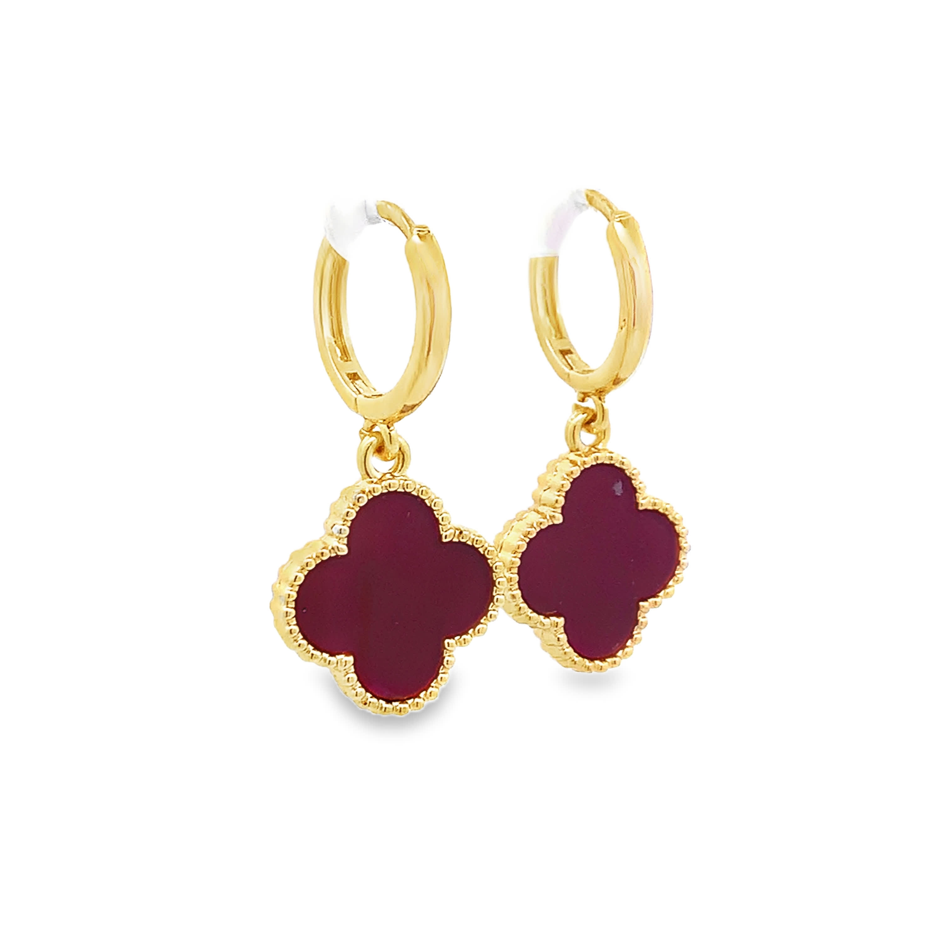 Yellow Gold Dangle Earrings with Dark Red Agate Cabochons