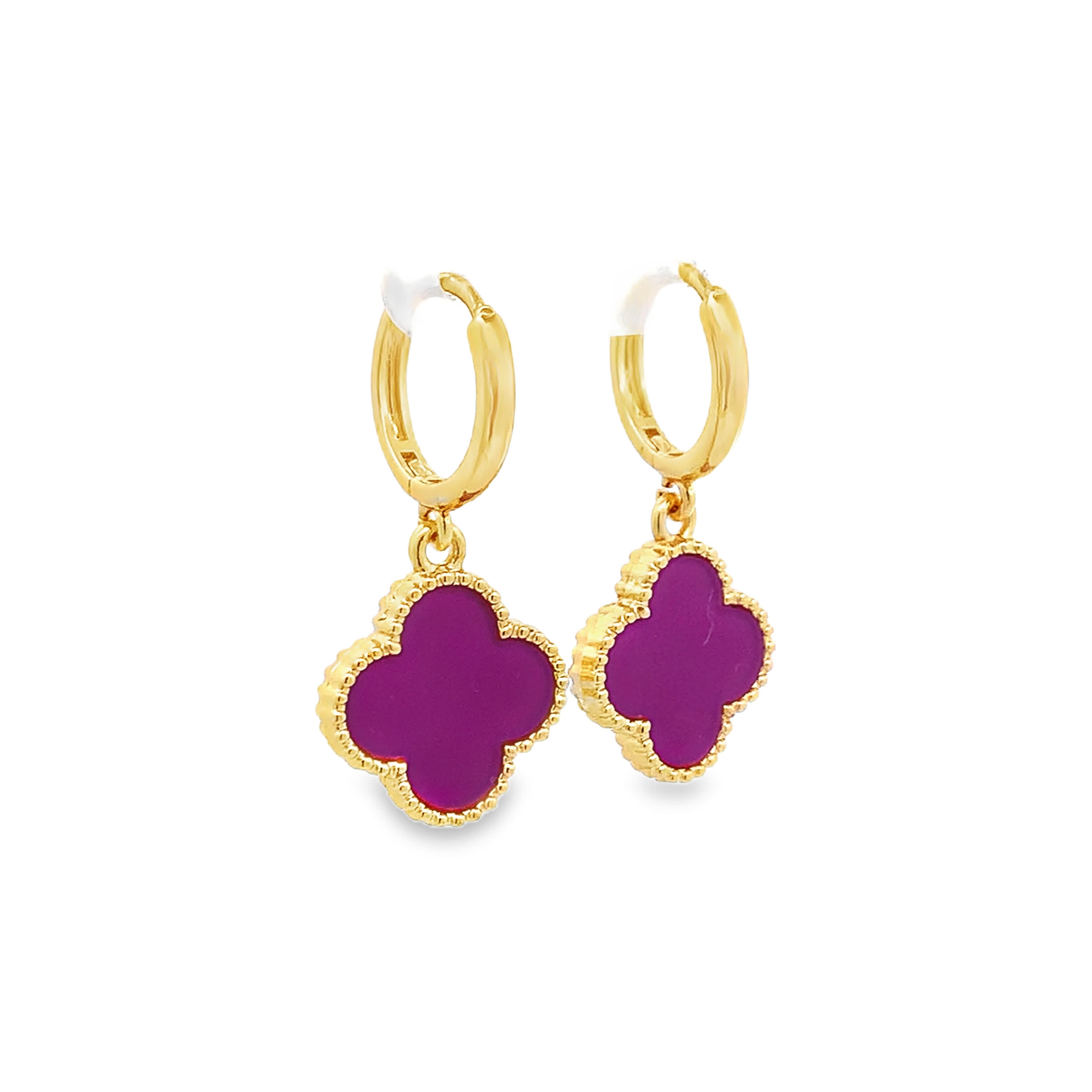 Yellow Gold Dangle Earrings with Clover-Shaped Amethyst