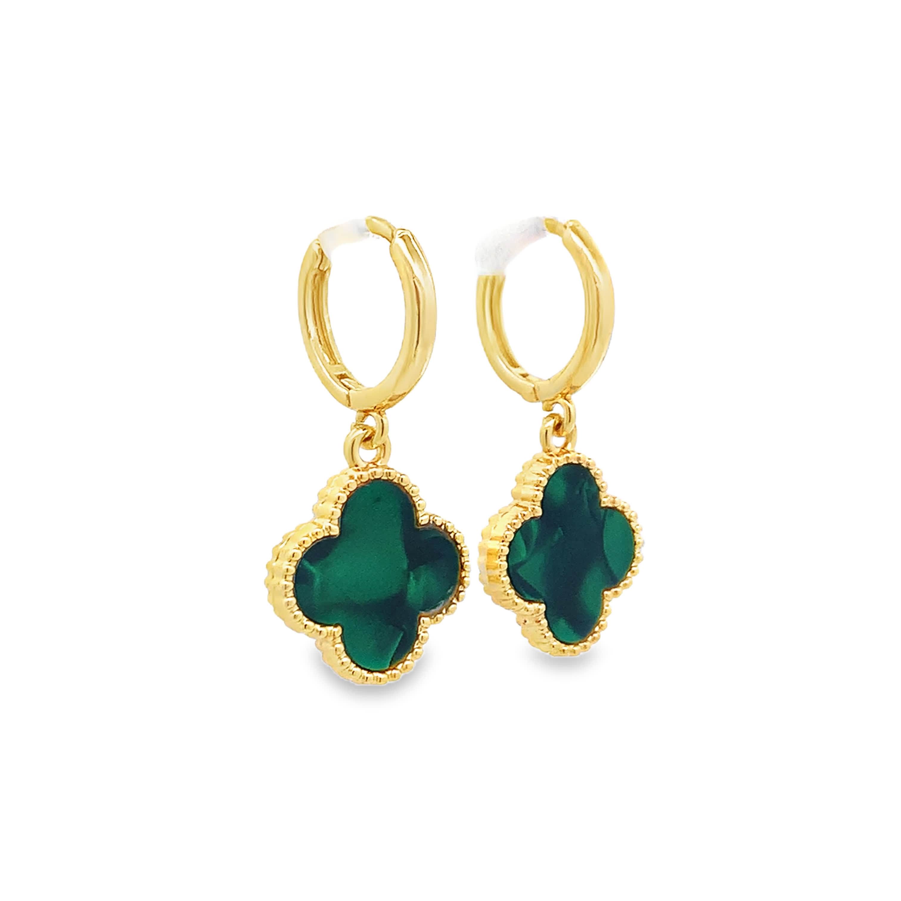Yellow Gold Dangle Earrings with Round Malachite Cabochons