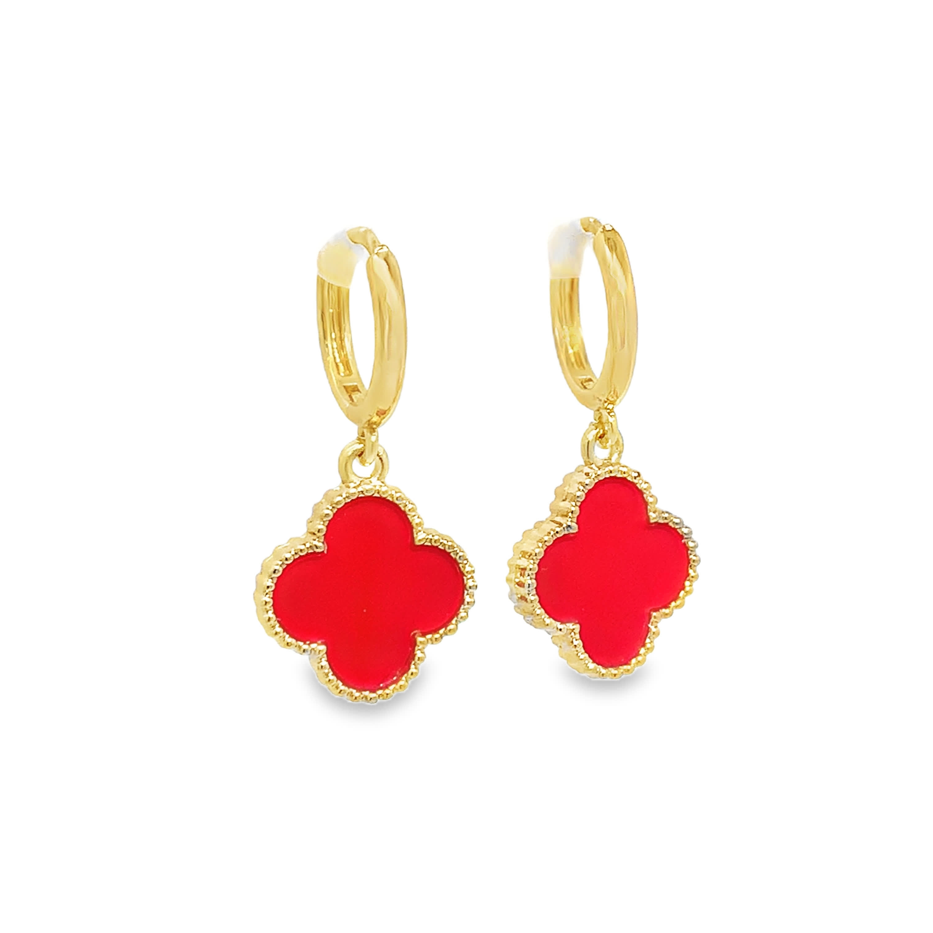 Yellow Gold Dangle Earrings with Red Coral Cabochons