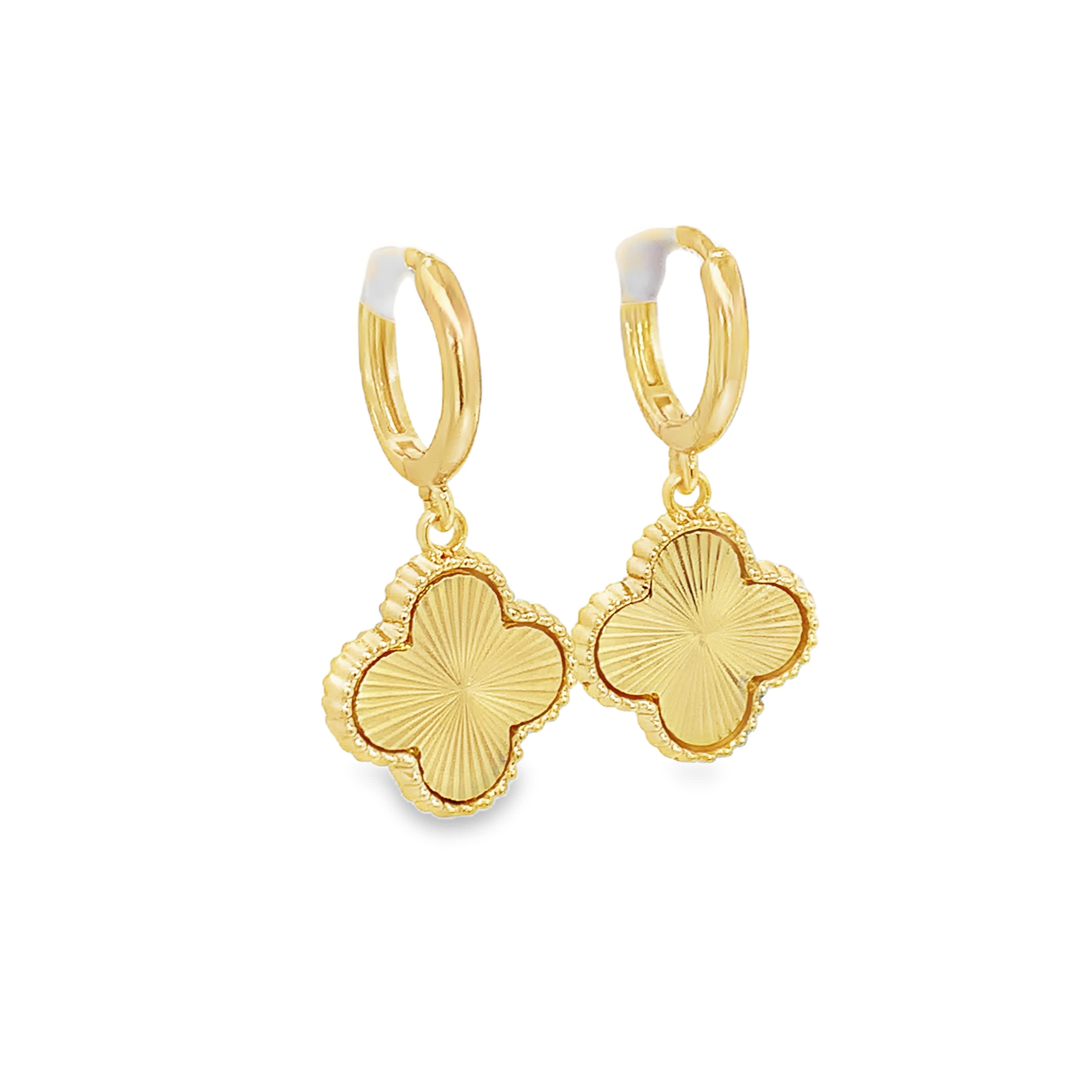 14k Yellow Gold Clover Drop Hoop Earrings