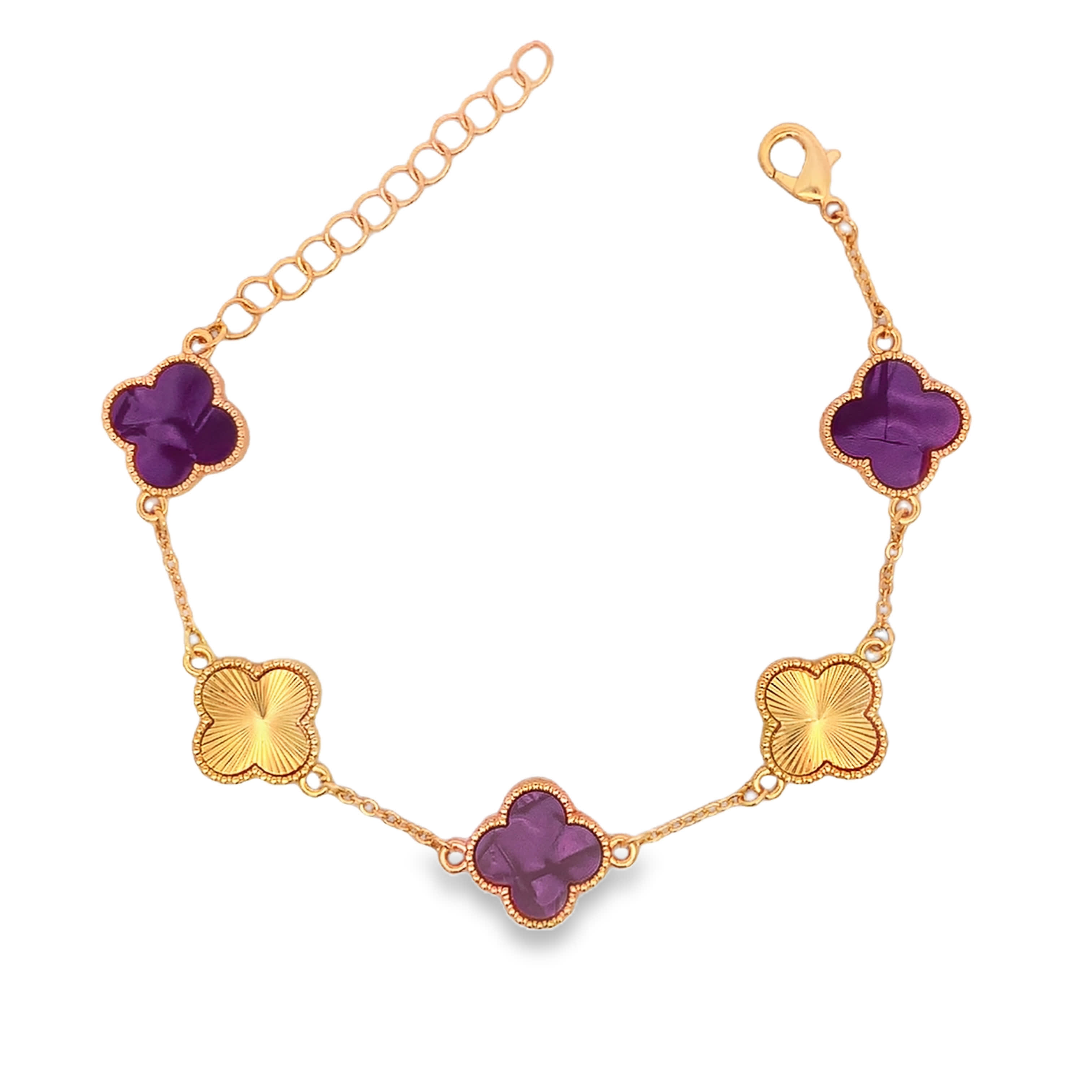 Yellow Gold Chain Bracelet with Purple Amethyst Cabochons