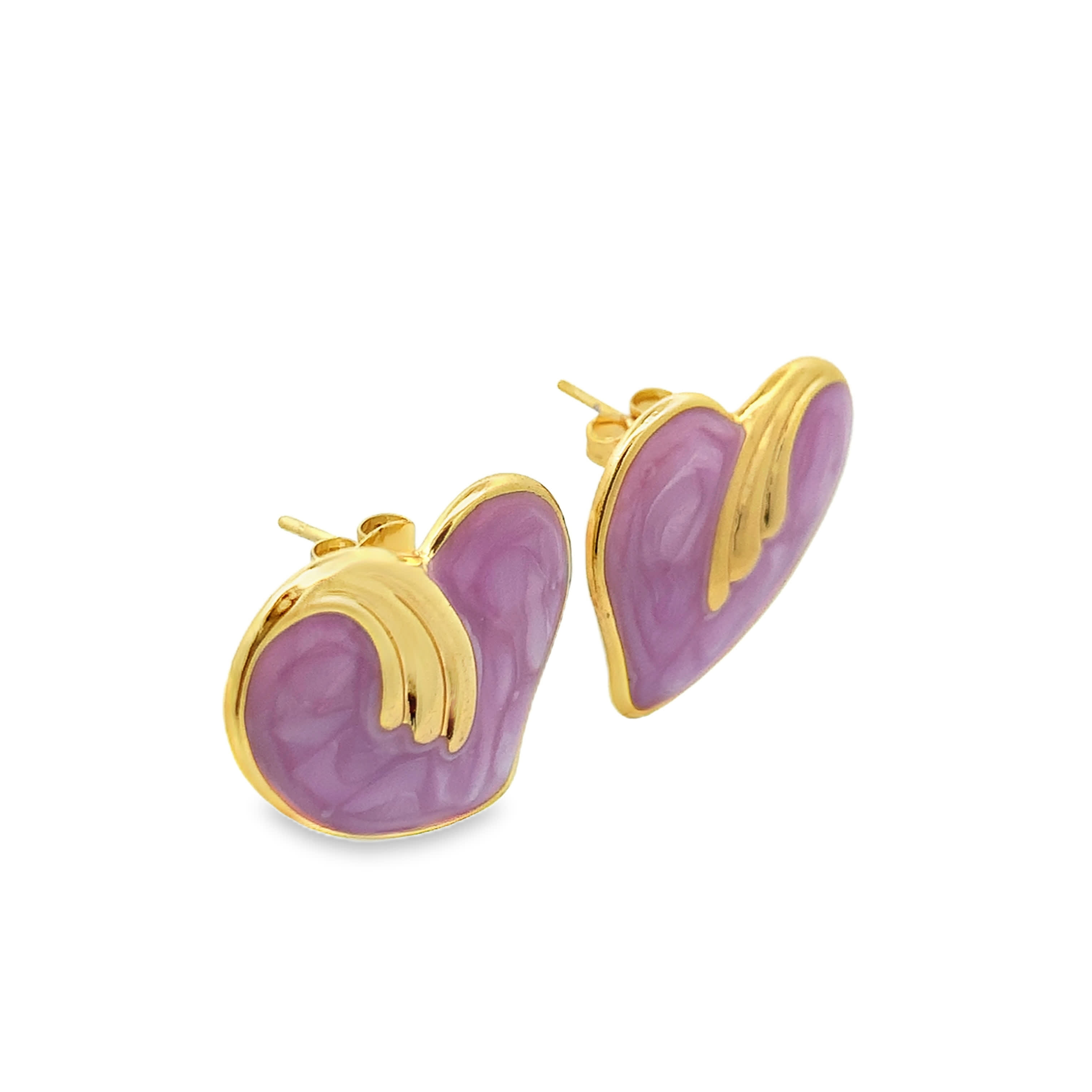 Pozłacane kolczyki sztyfty z fioletowym sercem z kamienia kaboszon