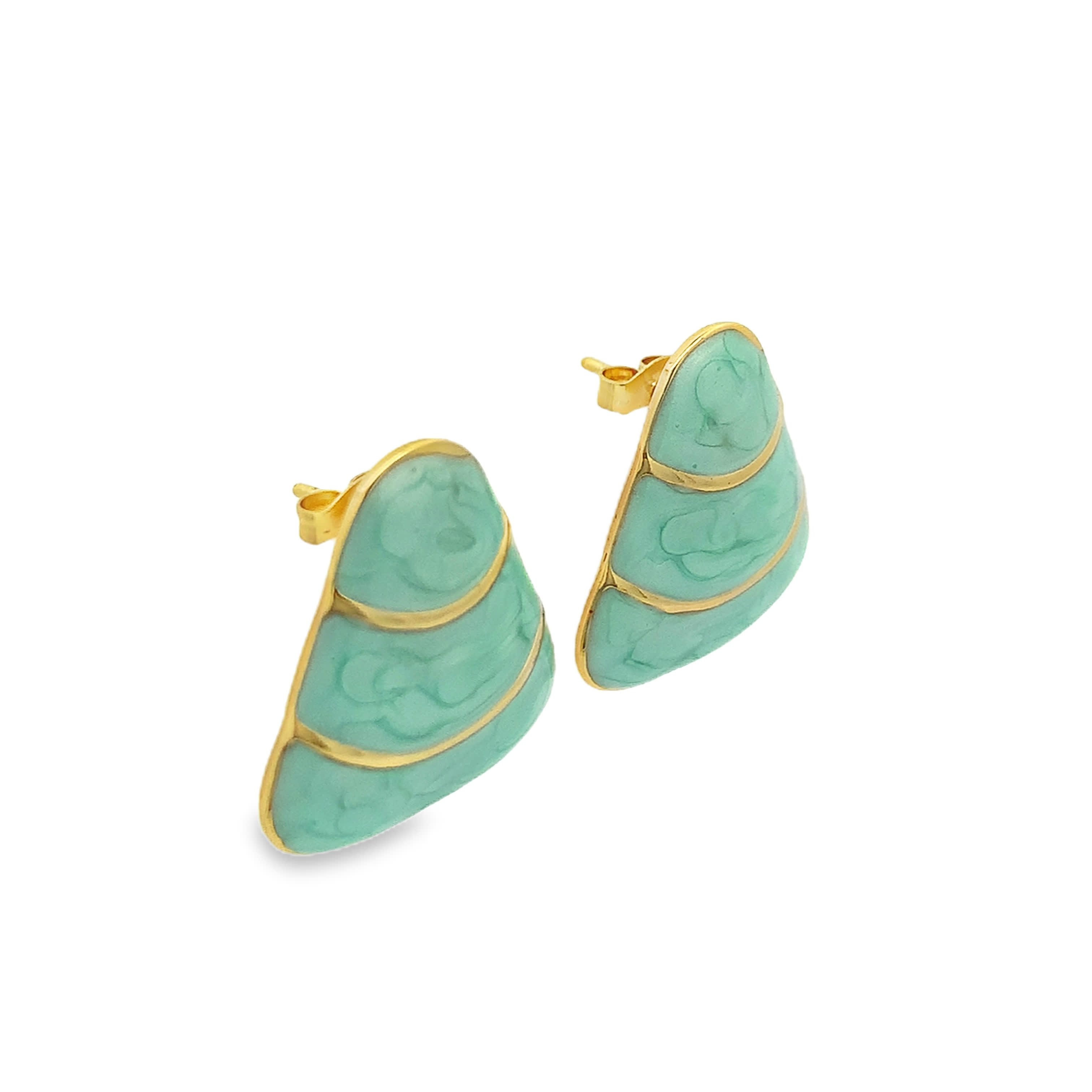 Klasyczne pozłacane kolczyki sztyfty z okrągłym zielonym kamieniem kaboszon