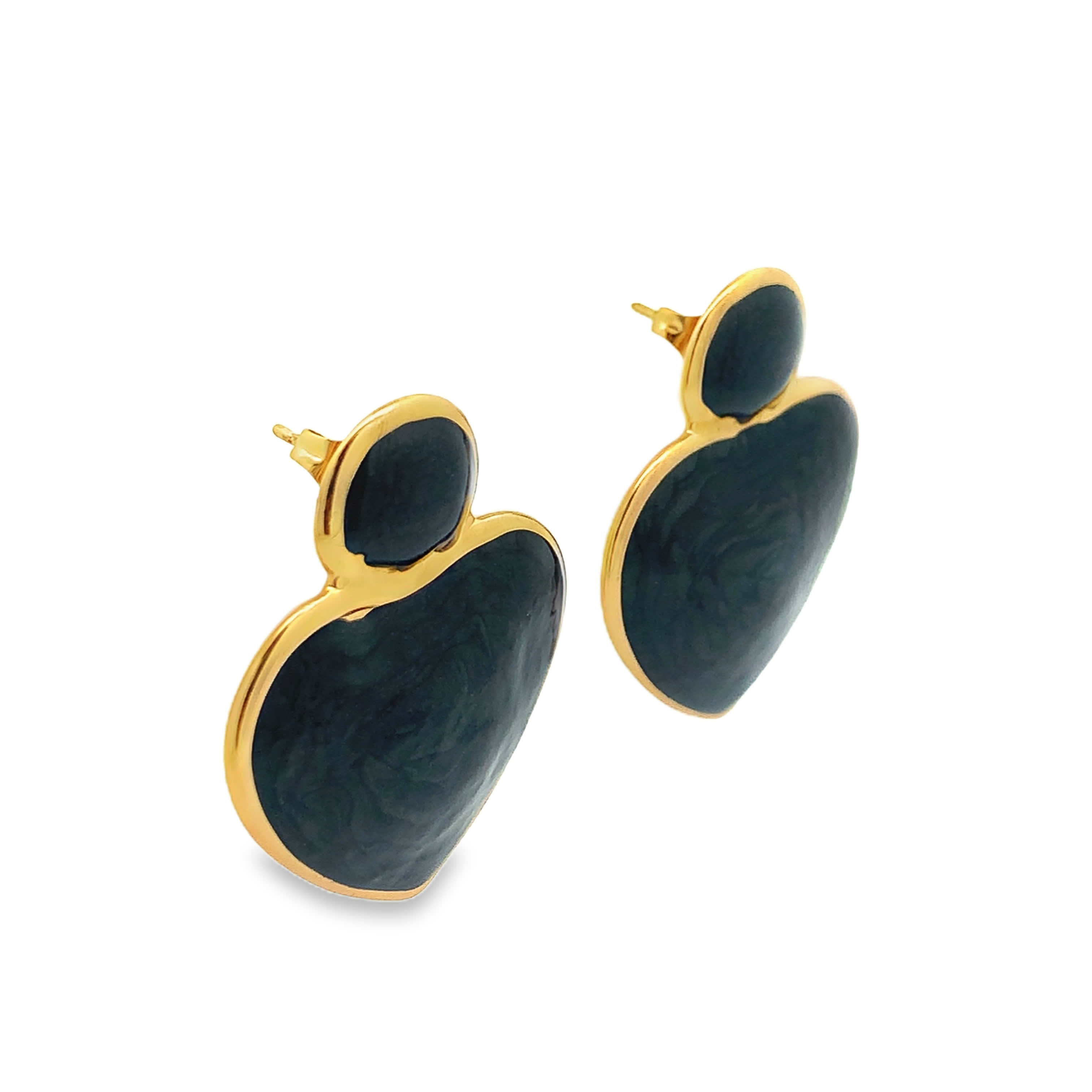 Pozłacane kolczyki sztyfty z czarnym sercem z kamienia kaboszon