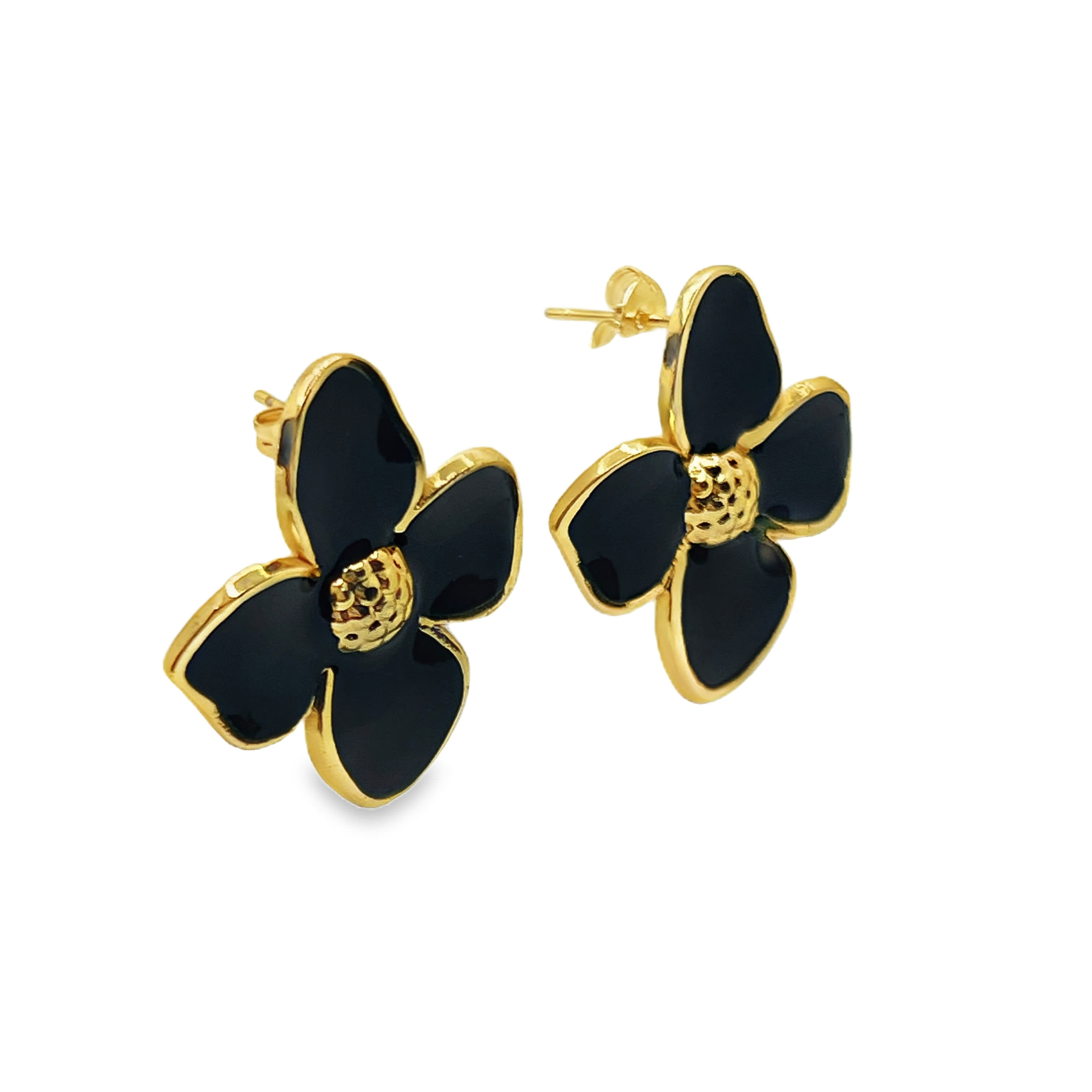 Klasyczne pozłacane kolczyki sztyfty z czarnym kamieniem kaboszon