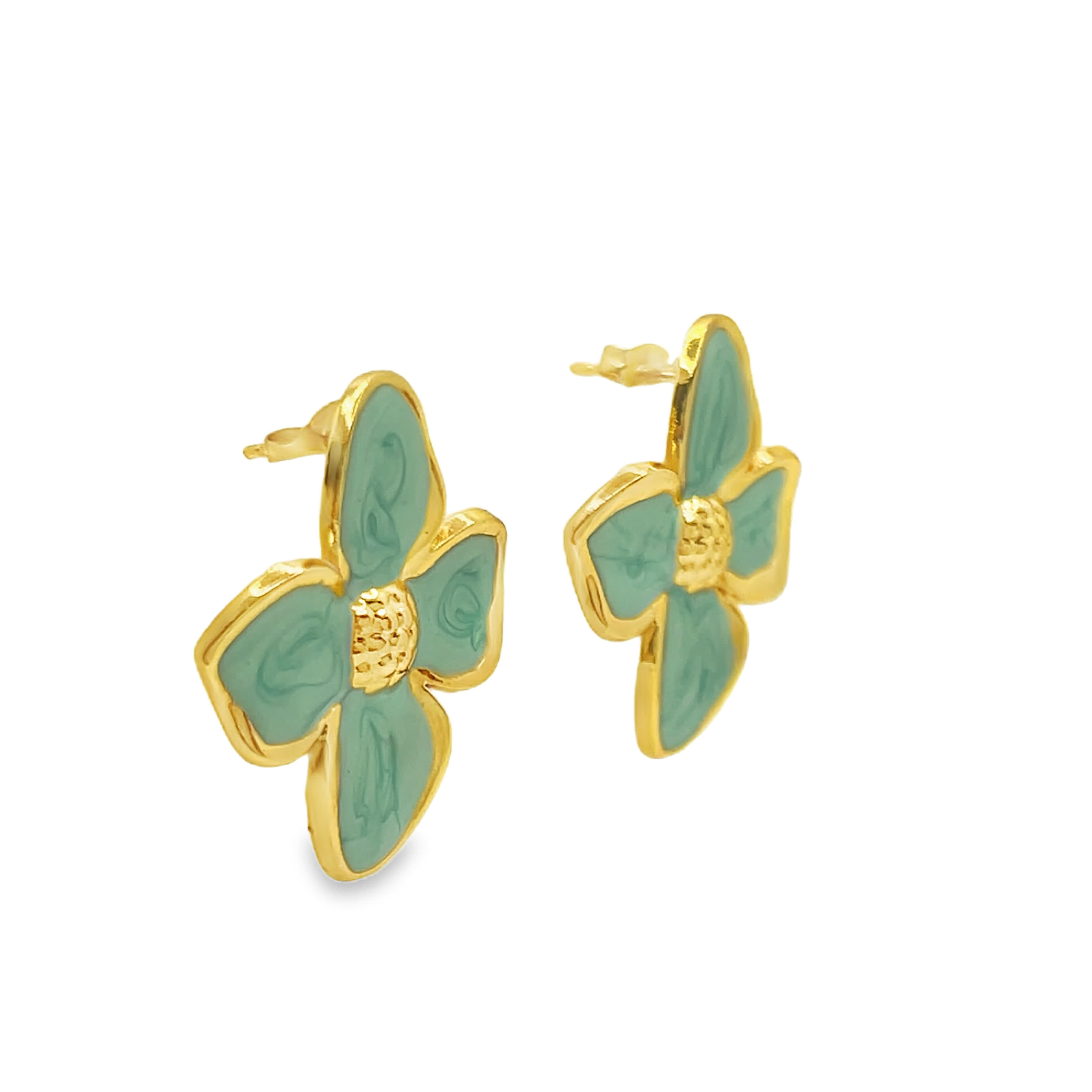 Sylwetkowe kwiatowe kolczyki sztyfty, wysoko polerowane, pozłacane