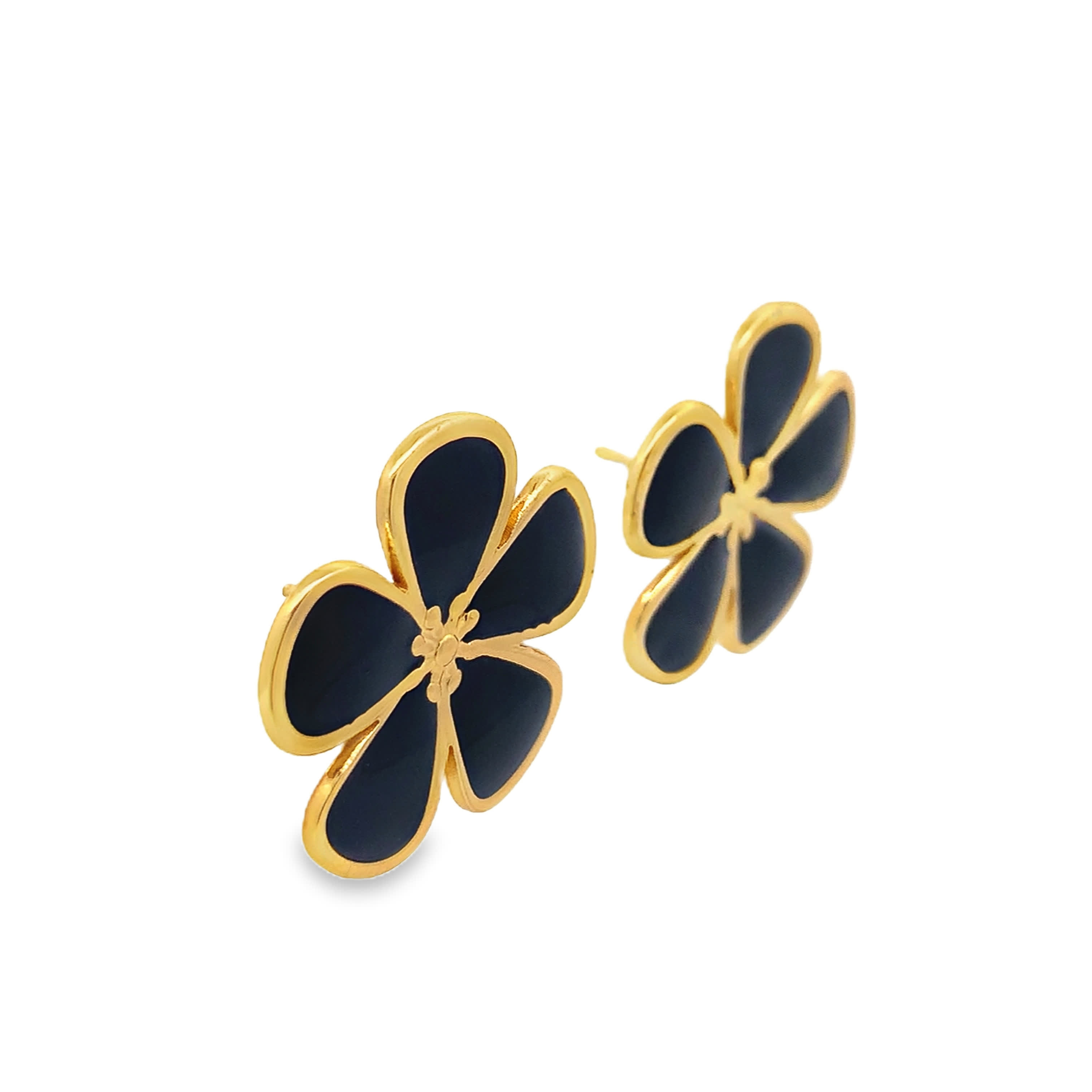 Pozłacane kolczyki sztyfty z barokowym czarnym kamieniem