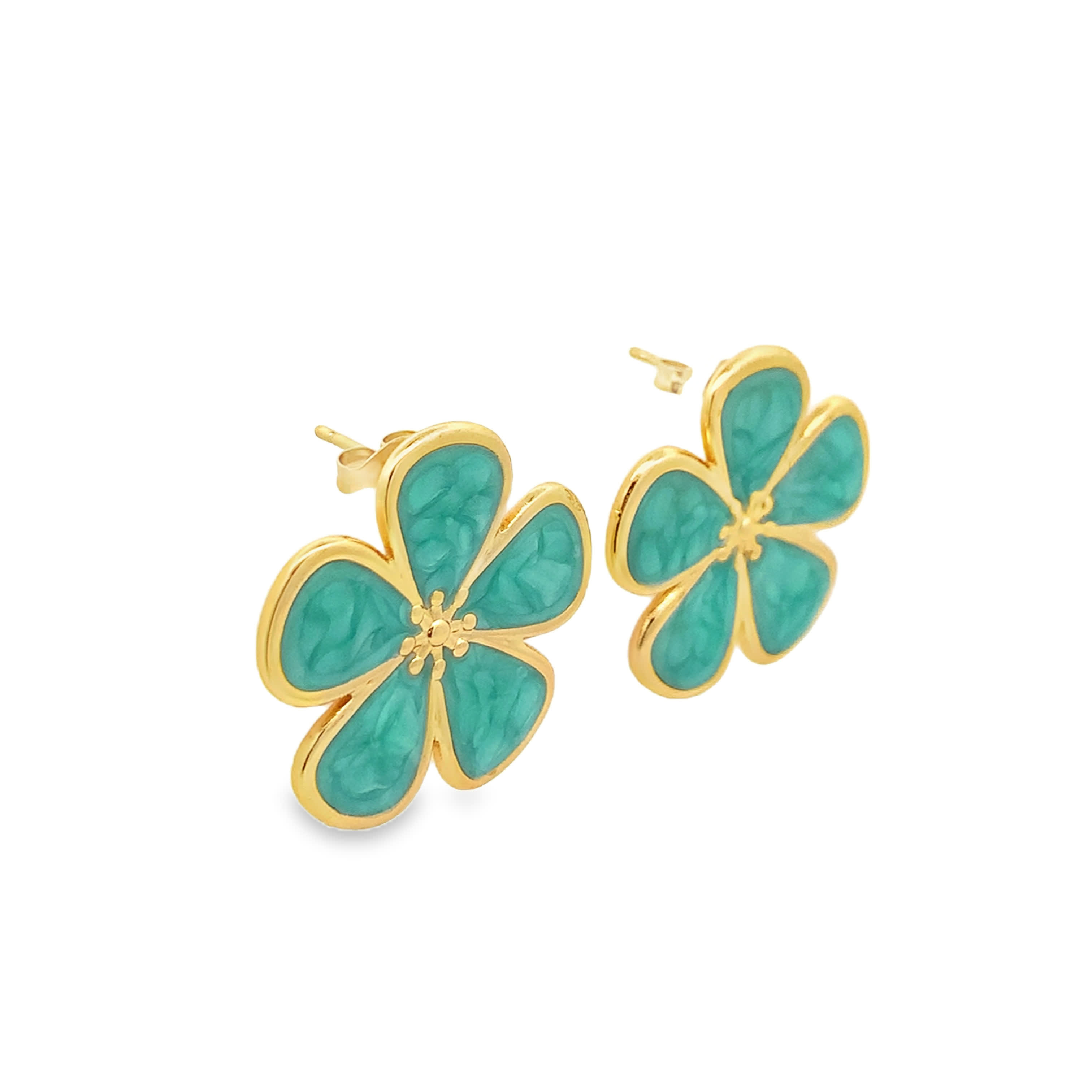 Pozłacane kolczyki sztyfty z zielonym kamieniem kaboszon
