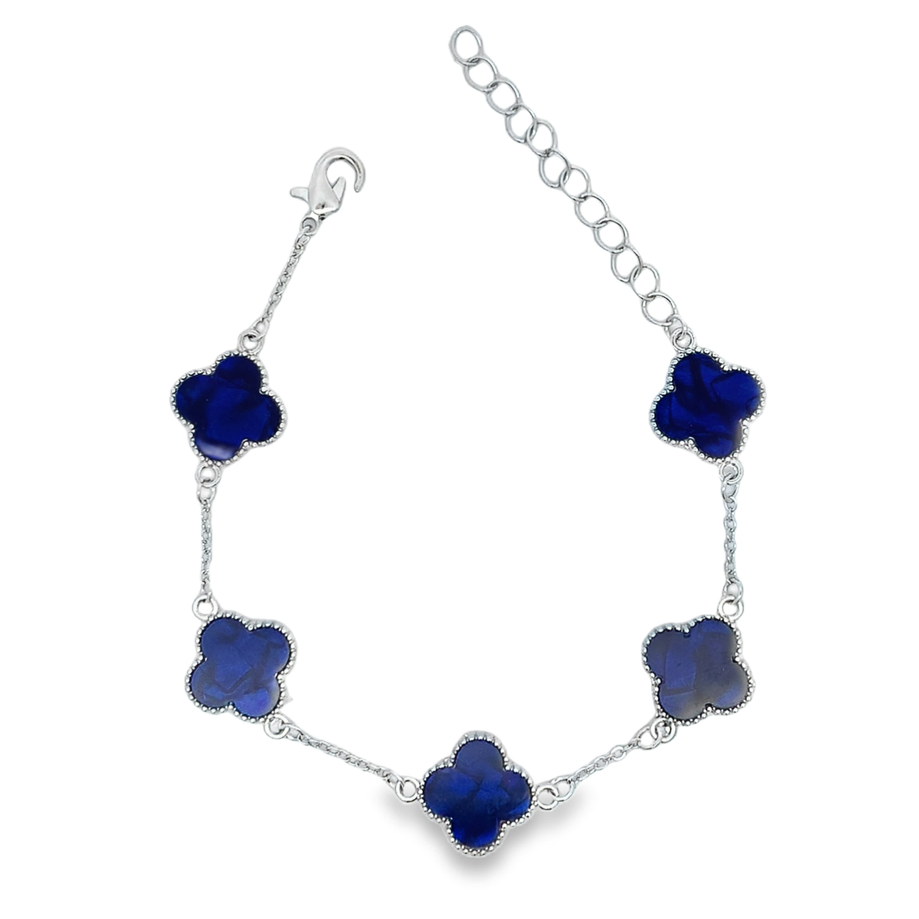 Posrebrzana bransoletka łańcuszkowa z niebieskim kamieniem barokowym