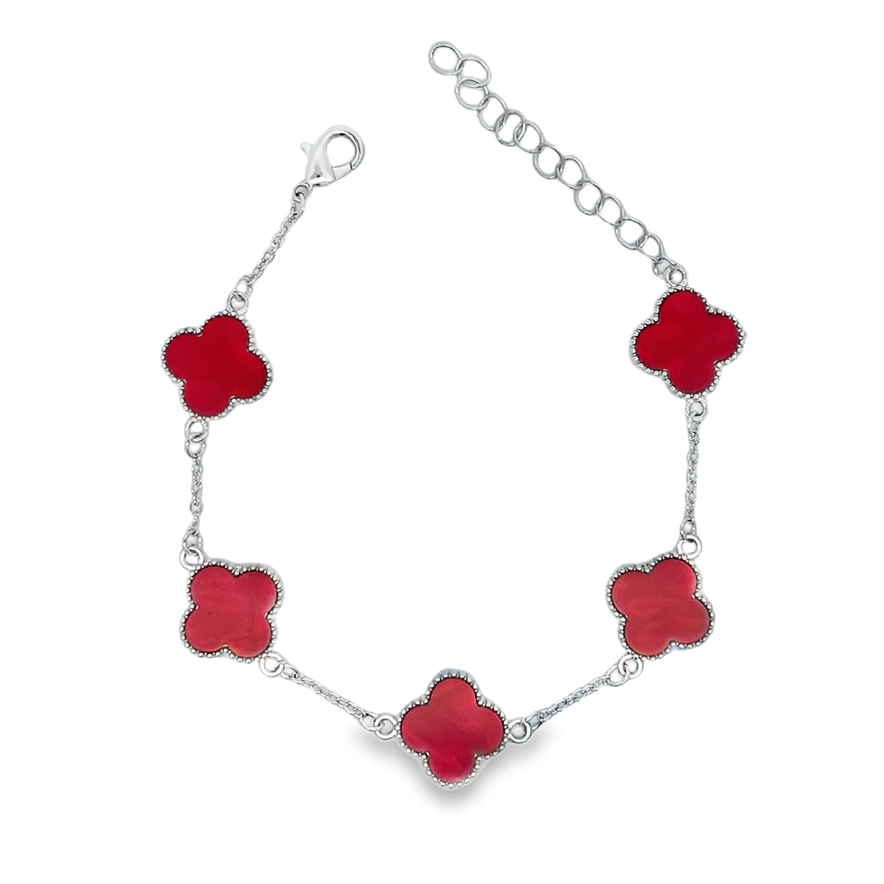 Bransoletka z zawieszką w kształcie kwiatowego motywu z rzeźbionego czerwonego kamienia
