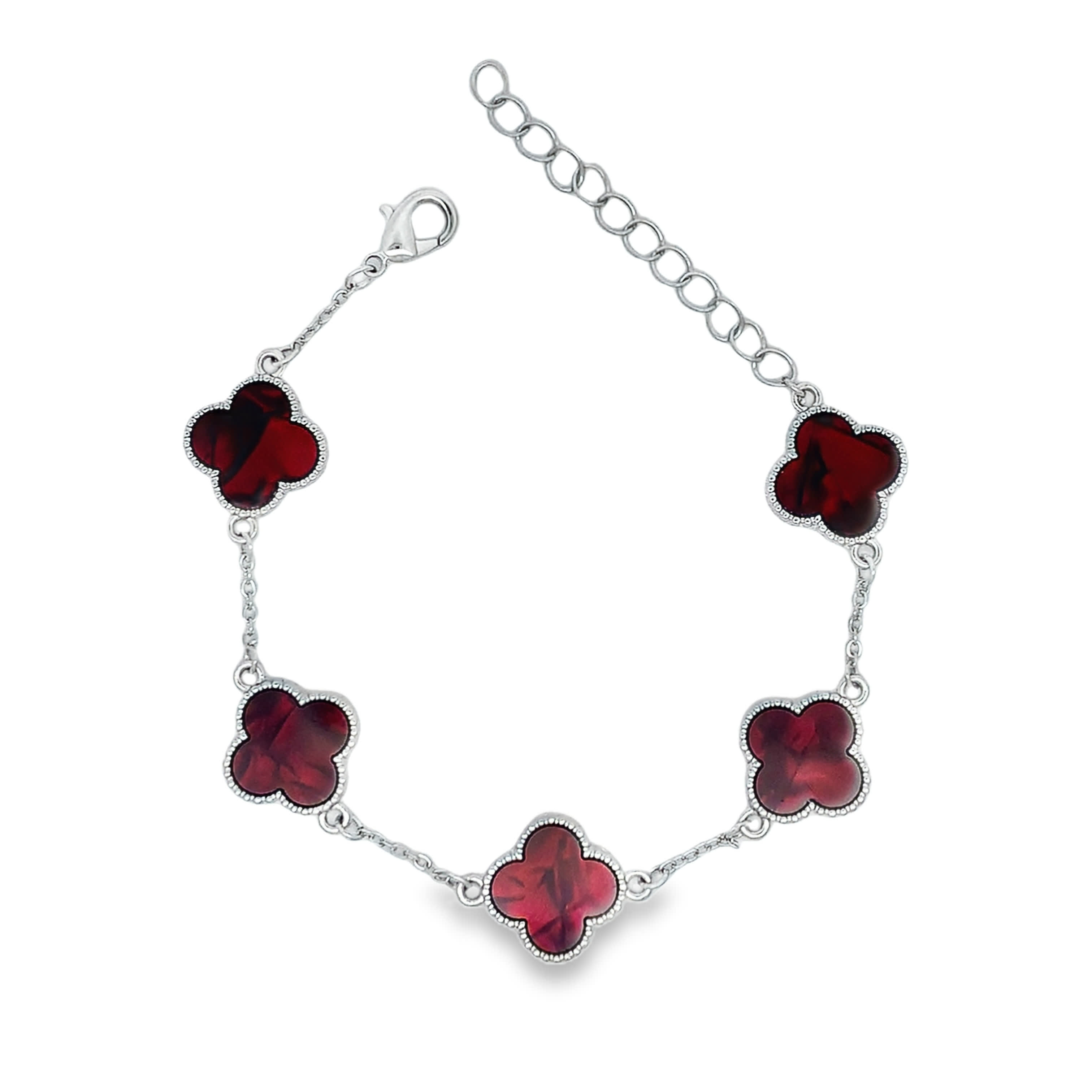 Bransoletka z zawieszką w białym metalicznym wykończeniu z kamieniem w kształcie gwiazdy z czerwonego odcienia